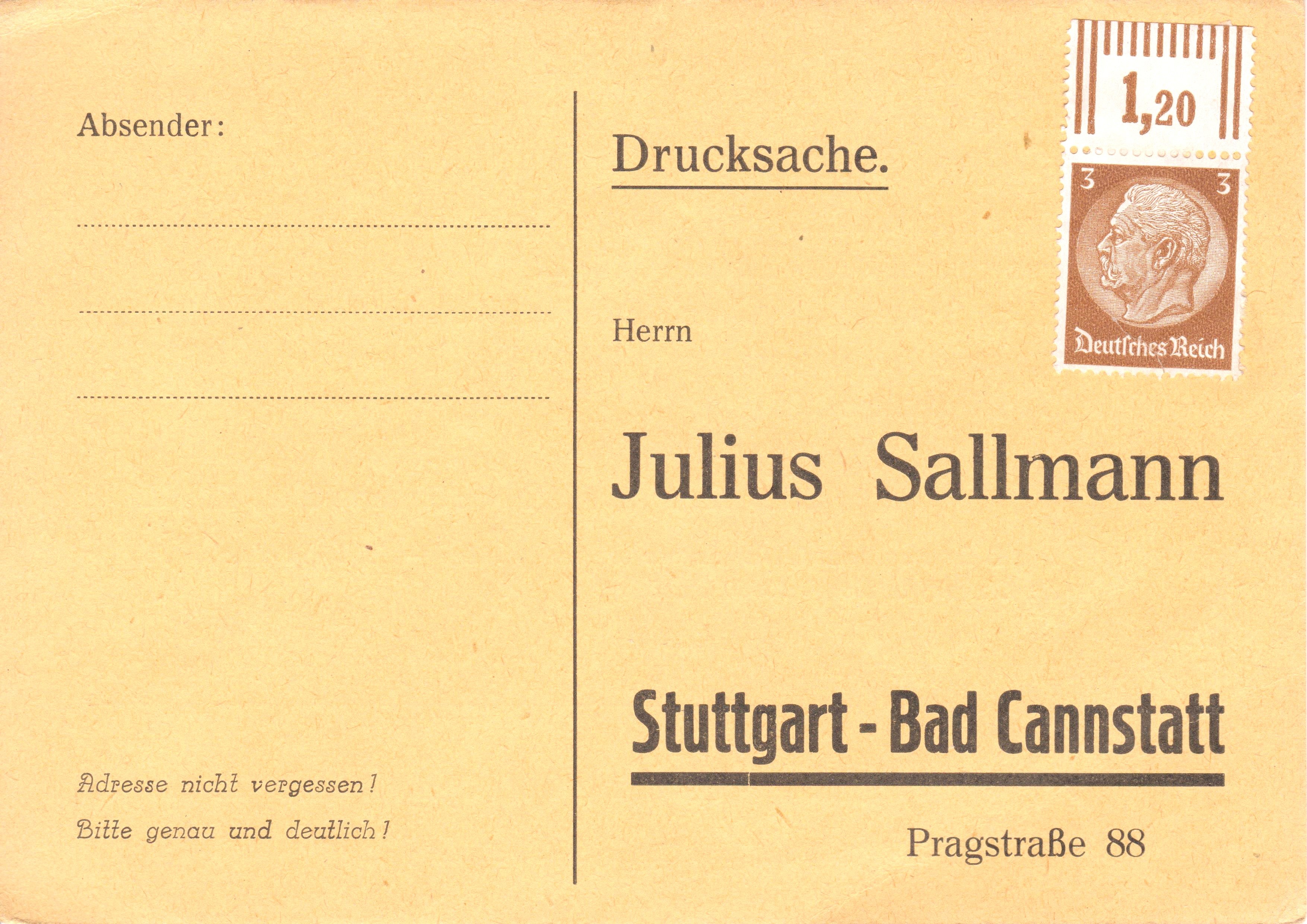 Mit einem Oberrandstück 3 Pf der Dauerserie Hindenburg-Medaillon portogerecht als Drucksache vorfrankierte Antwortkarte, die jedoch ungebraucht geblieben ist: