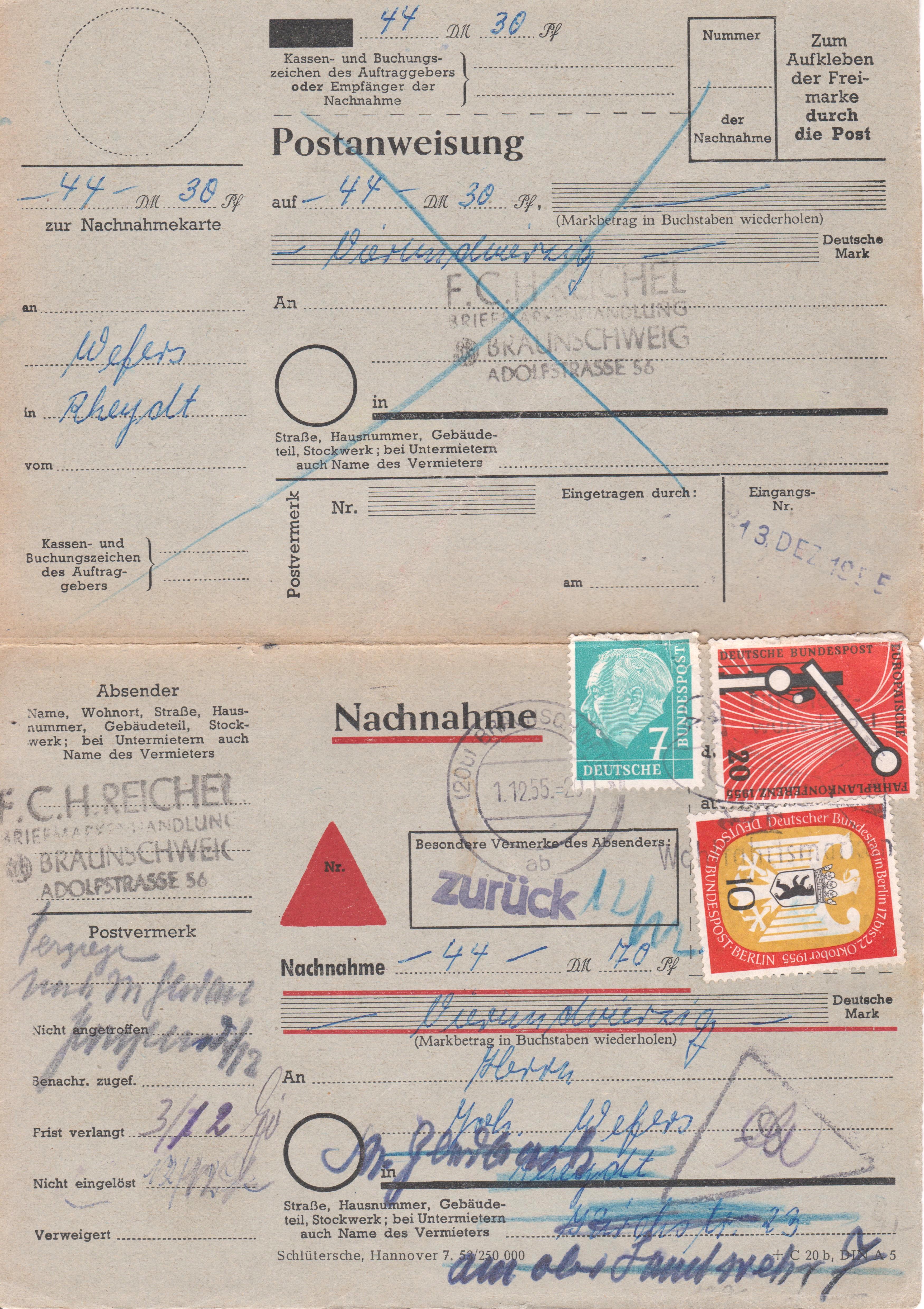 Beleg vom 01.12.1955, aufgegeben in (20b) BRAUNSCHWEIG:
