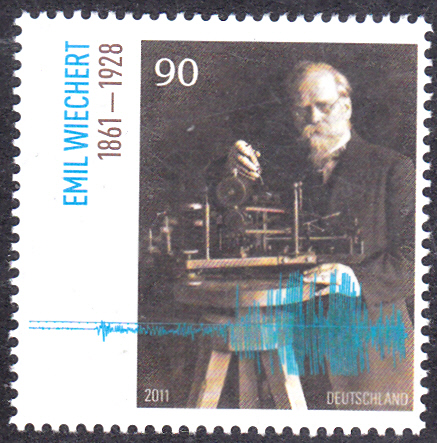 Zum 150. Geburtstag von Emil Wiechert erschien bei der Deutschen Post ein Marke (MiNr 2897) mit Emil Wiechert.