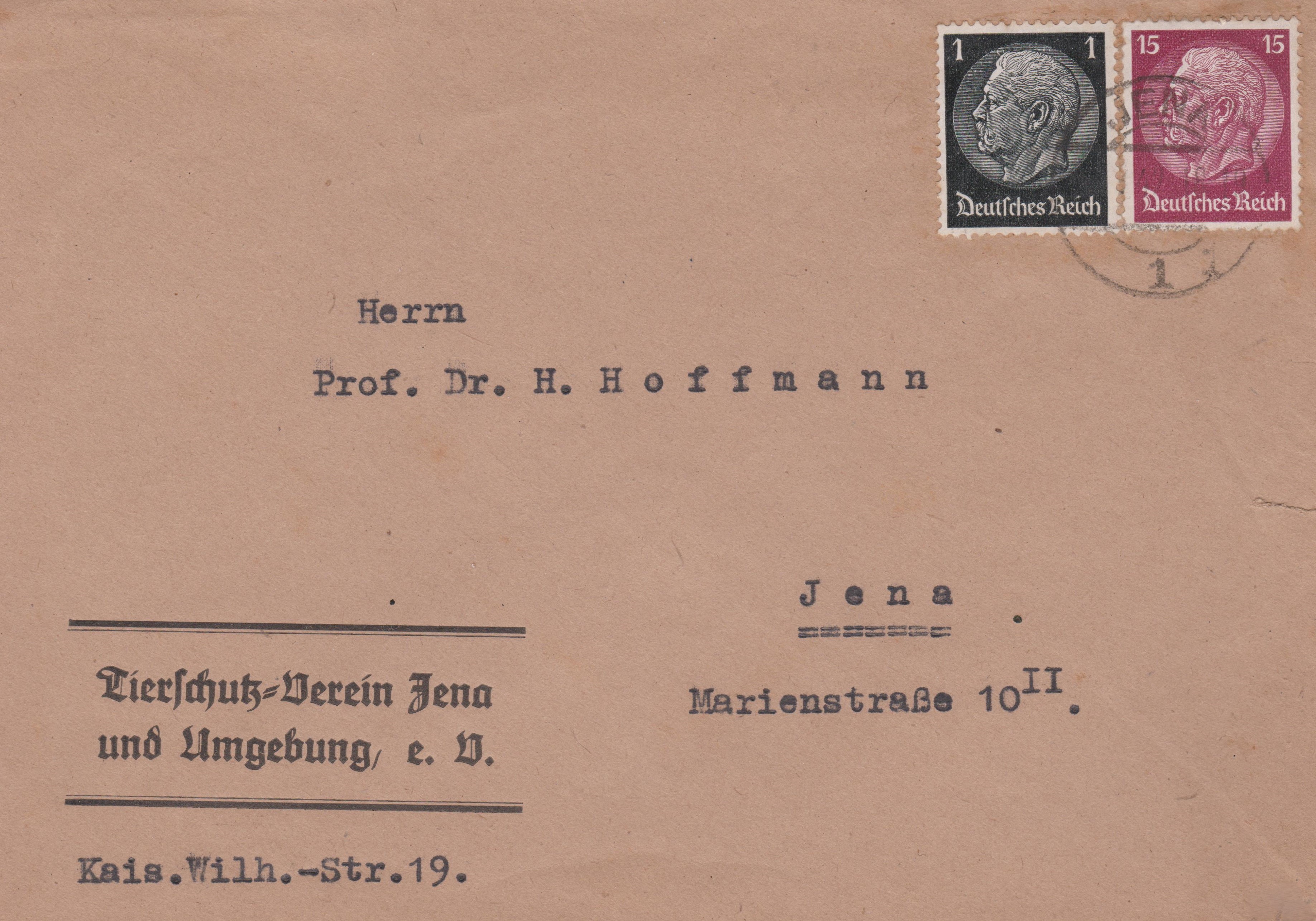 Mischfrankatur Dauerserie Hindenburg-Medaillon 15 Pf sowie 1 Pf 1942 auf Brief im Ortsverkehr, Portostufe 16 Pf für ein Gewicht von 20 bis 250 g, gelaufen in JENA: