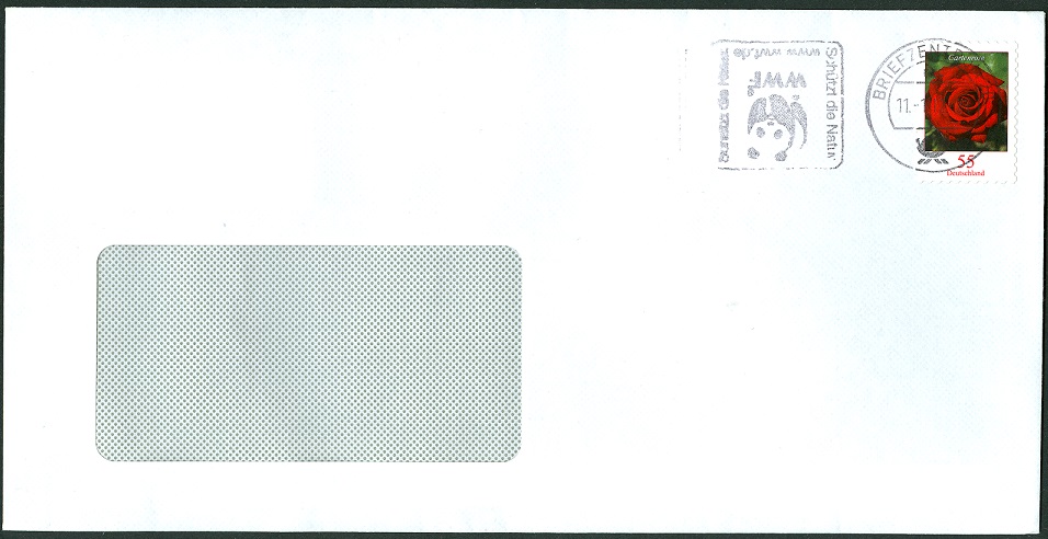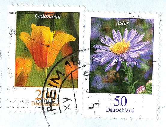 von mir gibt es heute auch mal eine Blume: Die selbstklebende zu 58 ct "Kuhschelle" zusammen mit 2 selbstklebenden Ergänzungswerten zu 2 ct auf einem Standartbrief in der Portostufe 62 ct. Das ganze gestempelt am 5.1.15 im Briefzentrum 20. Interessant an der Abstempelung ist der kreisrunde Fleck oben im Werbeeinsatz. Normalerweise kennen wir den ja "nur" als Brief mit der Inschrift "schreib mal wieder" ohne weitere Zusätze. Hier ist der Werbeeinsatz nicht richtig fest in die Maschine gesetzt worden und daher stempelt da (wahrscheinlich) ein Schraubenkopf mit. Das sieht man auch nicht alle Tage und ich kenne z. B. einen Sammlerfreund, der sich über diesen Abschlag riesig freuen wird, da er speziell Briefzentrumstempel sammelt und solche Abweichungen immer gesucht sind. Also selbst bei solcher unscheinbarer "Massenware" kann noch interessantes entdeckt werden