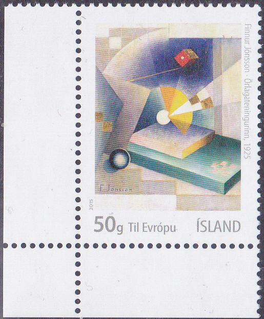 Finnur Jonsson (geb. 15. Nov. 1892 in Strýta in Hamarfjörður; gest. 1993) war ein isländischer Maler. Diese Marke aus Island (MiNr 1477) zeigt das Gemälde "Schicksalswürfel" von Finnur Jonsson. Das Nominale zur Zeit der Ausgabe betrug 180 Kronen.