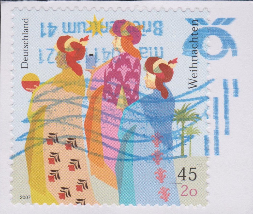 Auf der Weihnachtsmarke 2013 (MiNr 3035) der Deutschen Post sehen wir eine Darstellung zum Thema "Stern von Bethlehem" mit den Heiligen Drei Königen.