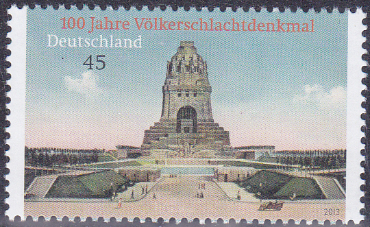 Zum Jubiläum "100 Jahre Völkerschlachtdenkmal in Leipzig ist diese Marke (MiNr 3033) mit dem Völkerschlachtdenkmal nach Entwürfen von Bruno Schmitz erbaut von Christian Behrens (1852-1905) und Franz Metzner (1870-1919).
