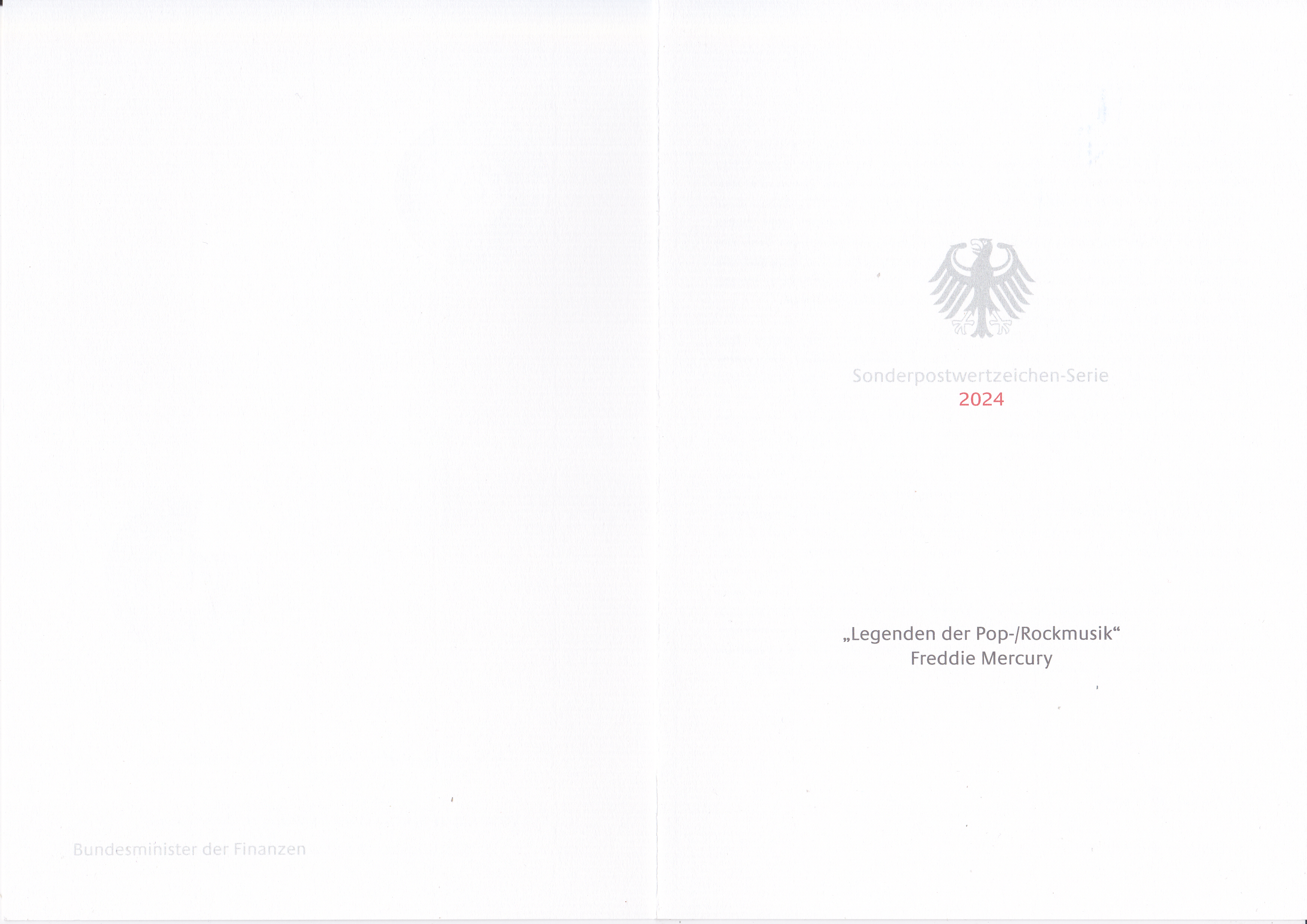 Ministerkarte des Bundesministers für Finanzen mit zwei Marken " Freddie Mercury" (MiNr 3851) aus der Serie "Legenden der Pop- und Rockmusik" und den beiden Ersttagsonderstempel Bonn und Berlin.