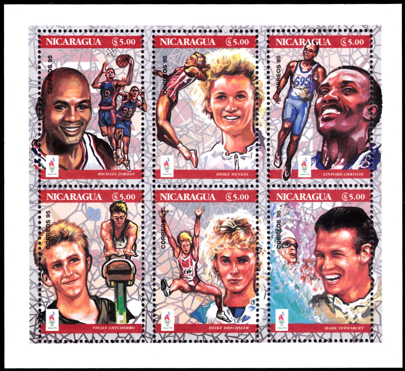 Diese beiden Marken wurden zusammen mit zwei anderen Marken für Medaillengewinner in einem Block (MiNr Block 279) verausgabt.