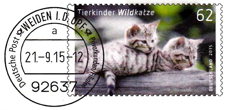 Zum Ausgabeumfang der DPAG am 2.Januar 2015 gehörte ein Motiv "Wildkatze". Die 62 Cent-Marke erschien wie gewohnt im 10er-Bogen. Aber auch als selbstklebende Ausgabe als so genanntes MAXISET.