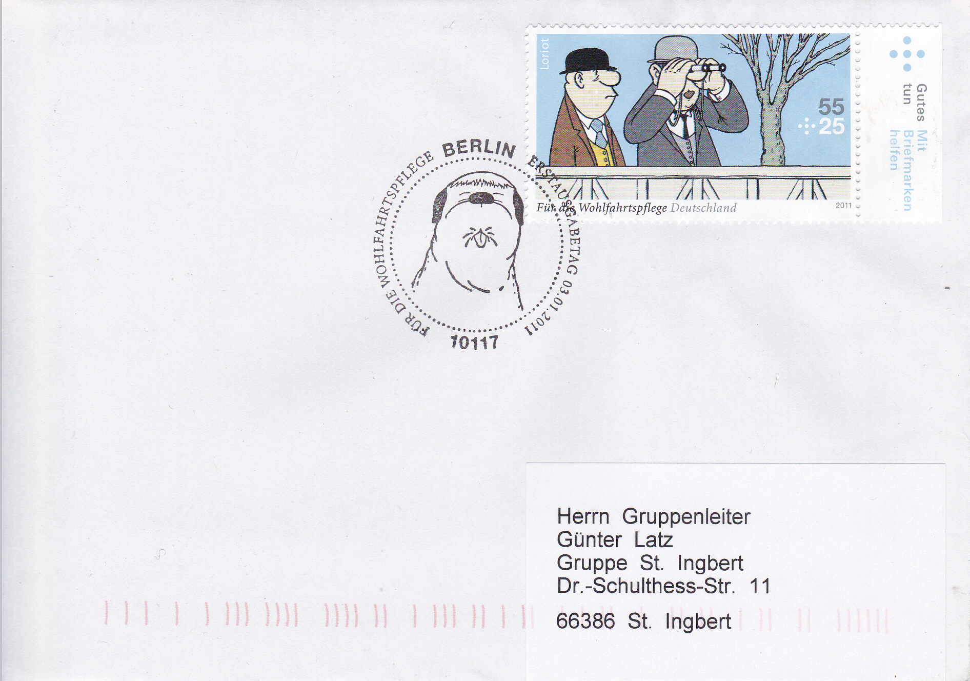 Ähnlicher Brief, jetzt mit dem Ersttagsonderstempel Berlin.