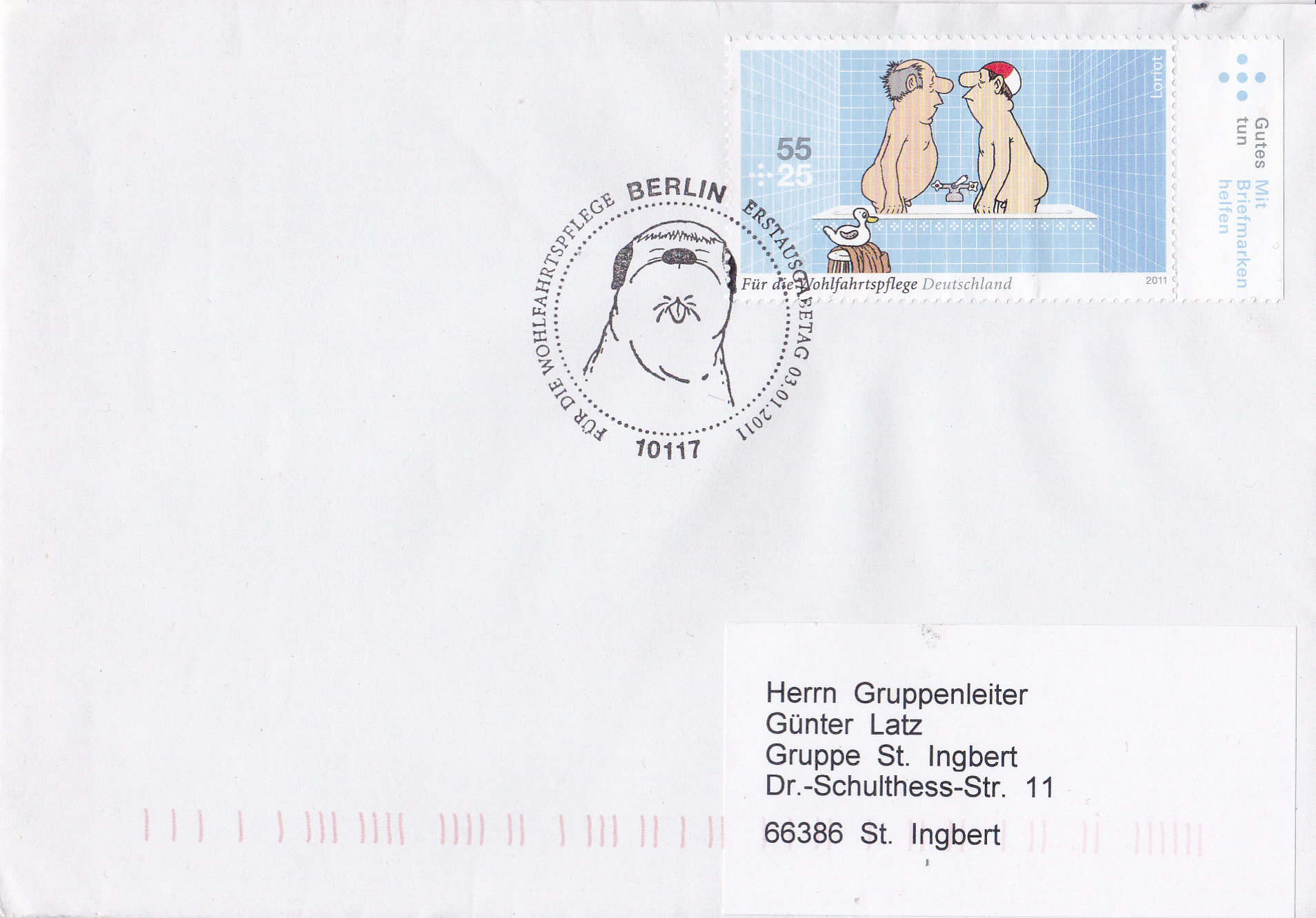 Brief mit der Marke zu 55+25 Cent (MiNr 2838) "Herren im Bad" und dem Ersttagsonderstempel Berlin.