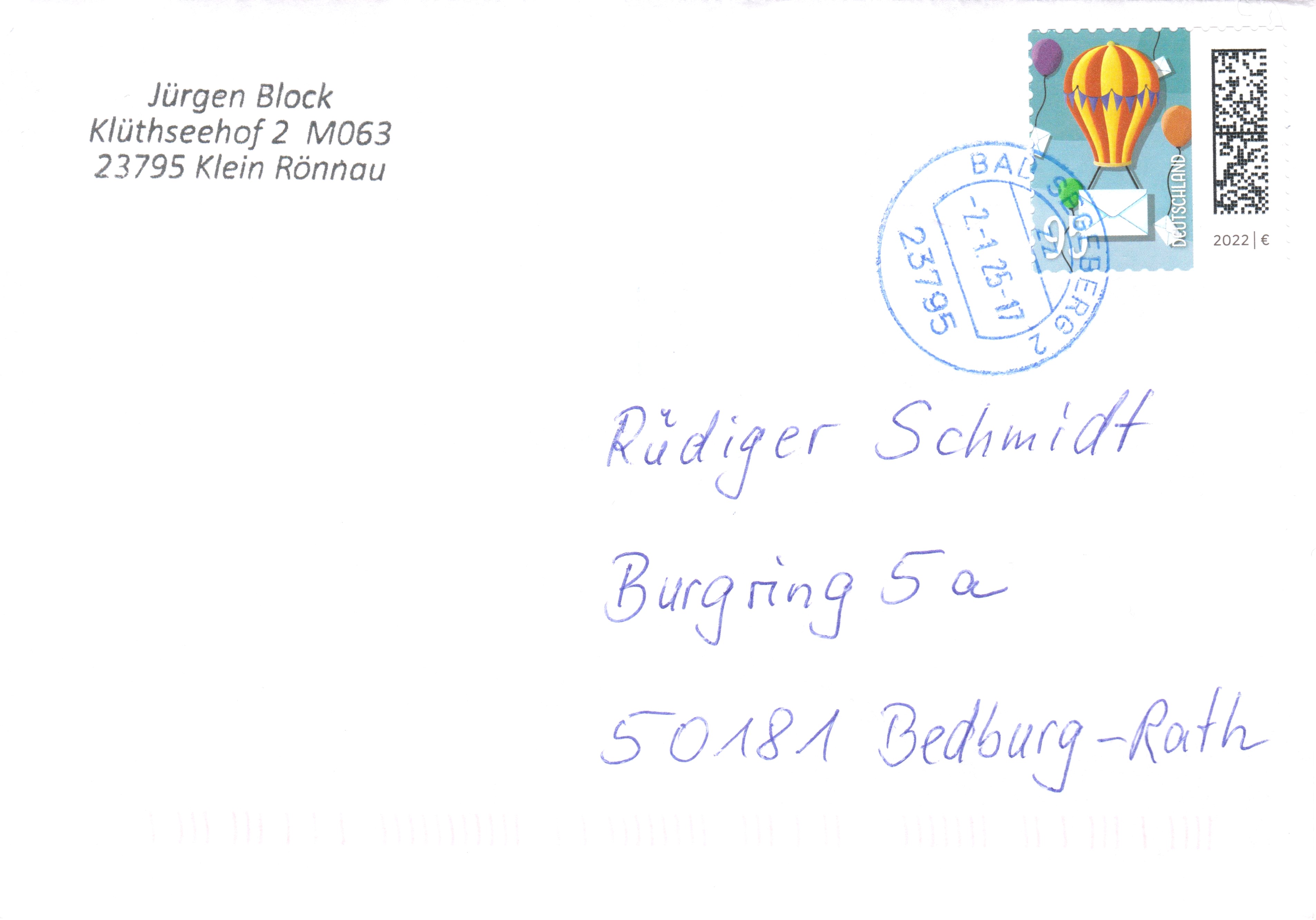 Ab 01.01.2025 beträgt das Porto für einen Standardbrief (bis 20g) 95 Cent.