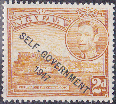 Die Freimarkenausgabe "Landesmotive" aus dem Jahre 1938 wurde 1948 mit einem diagonalem, schwarzem bzw. rotem Bdr.-Aufdruck "SELF-GOVERNMENT / 1947" versehen.
