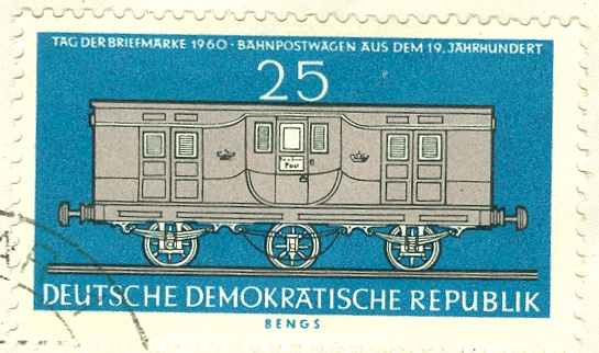 Die am 6. Oktober 1960 verausgabte Marke zum Tag der Briefmarke 1960 (MiNr. 790) zeigt einen Bahnpostwagen aus dem 19. Jahrhundert.
