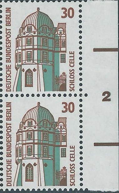 Der Wert Sehenswürdigkeiten zu 30 Pf im postfrischen senkrechten Paar vom rechten Bogenrand und Formnummer 2: