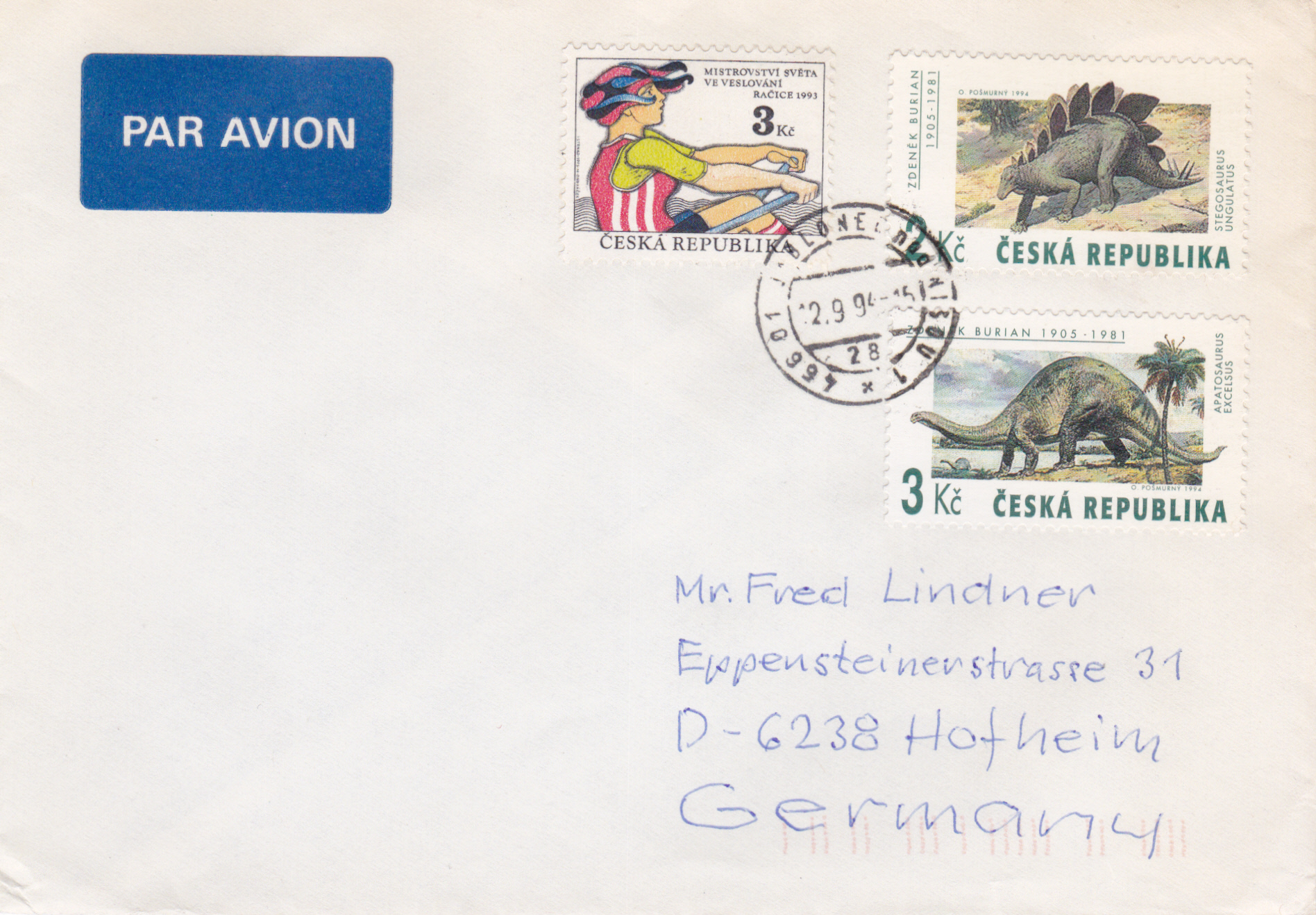 Auf einer Marke aus der Tschechischen Republik (MiNr 42) wird ein Apatosaurus excelsus nach einer Illustration von Zdeněk Burian (1905–1981; tschechischer Zeichner und Grafiker) gezeigt.