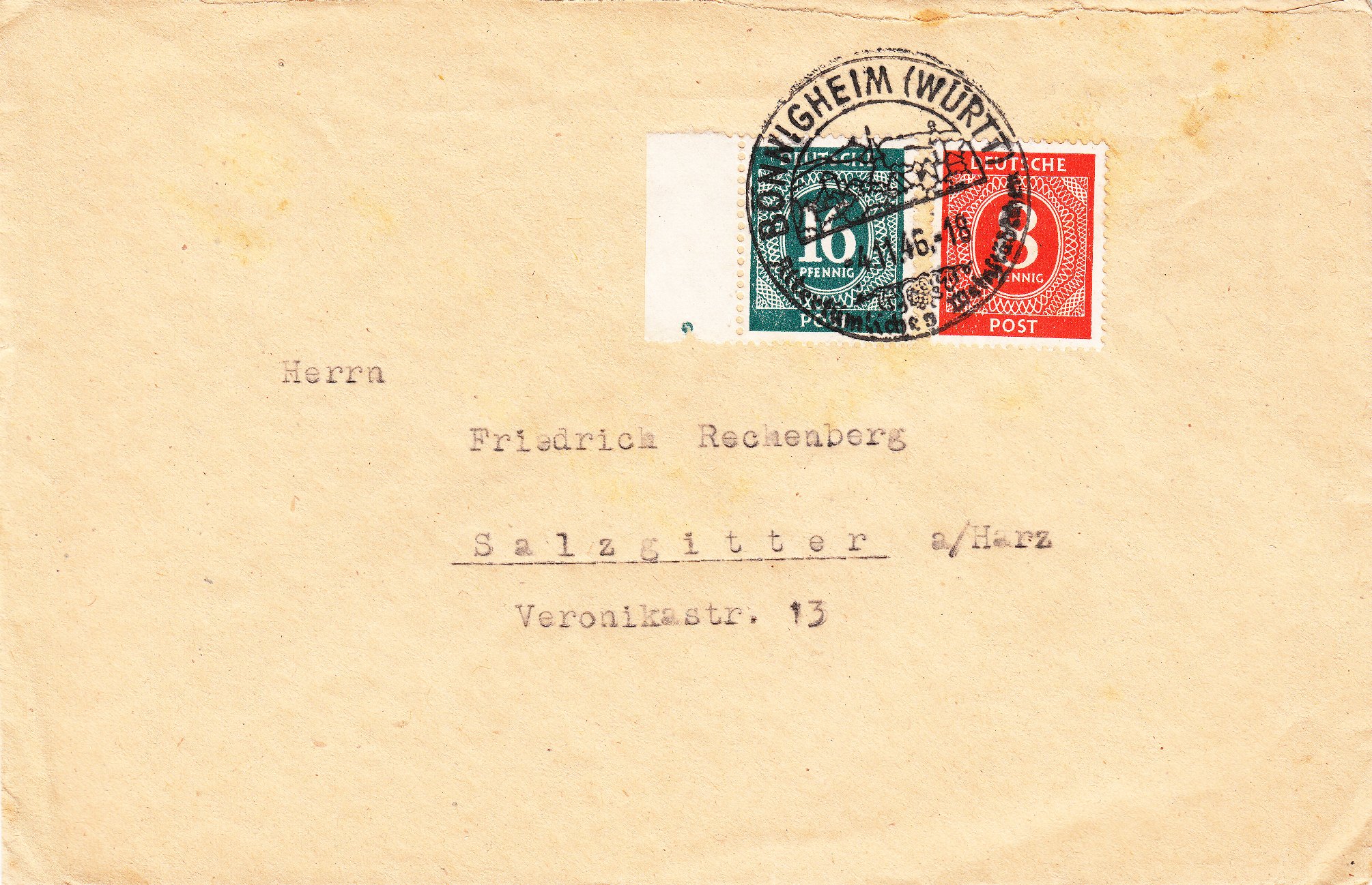 Die MiNr. 923 ist als EF recht häufig auf der Sendungsart "Geschäftspapiere" zu finden. Hier ein Beispiel vom 20.11.1946 von Wuppertal nach Winterborn: