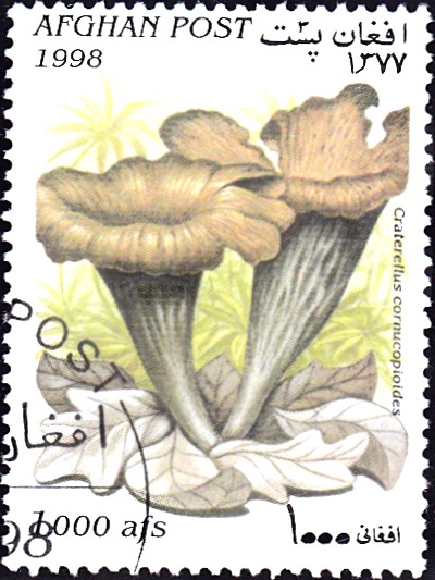 Afghanistan MiNr. 1764 zeigt eine Totentrompete (Craterellus cornucopioides):