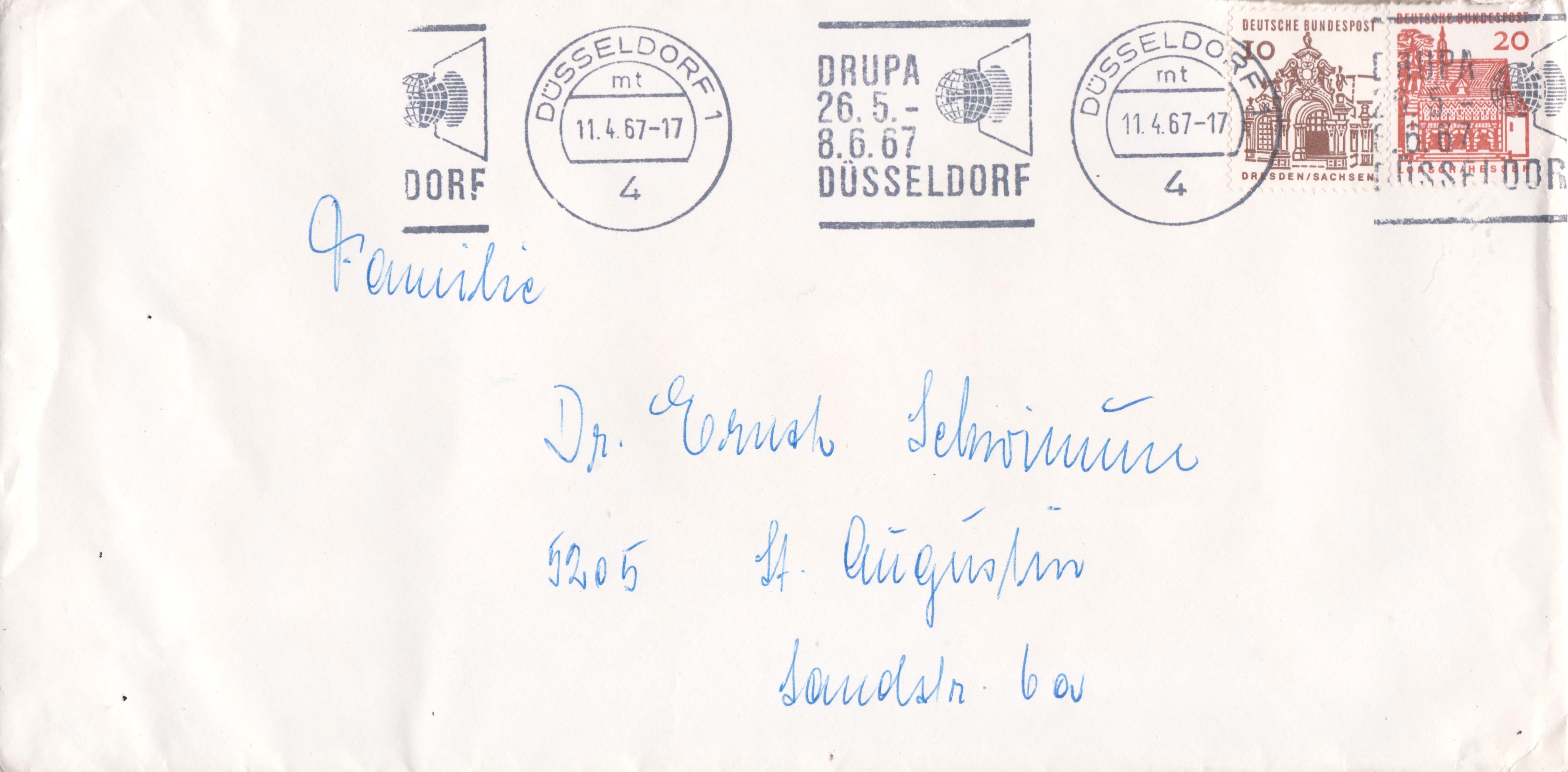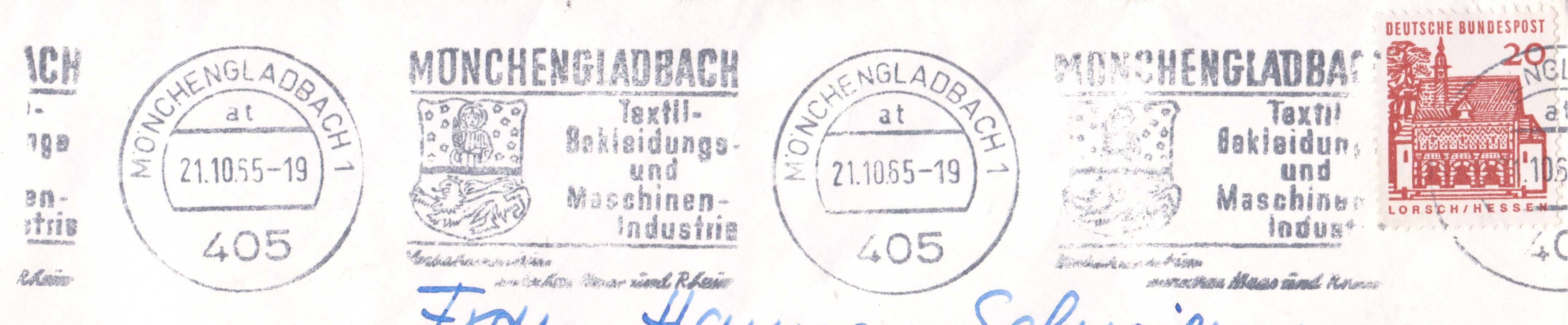 Bandstempel vom 21.1.1965b aus MÖNCHENGLADBACH mit Werbeeinsatz zum Thema "Textil-Bekleidungs- und Maschinen- Industrie":
