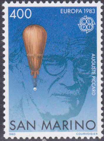 In San Marino erschien eine Europamarke 1983 (MiNr 1278) zum Gemeinschaftsthema "Große Werke des menschlichen Geistes" mit einem Porträt von Auguste Piccard und einem Stratosphärenballon.