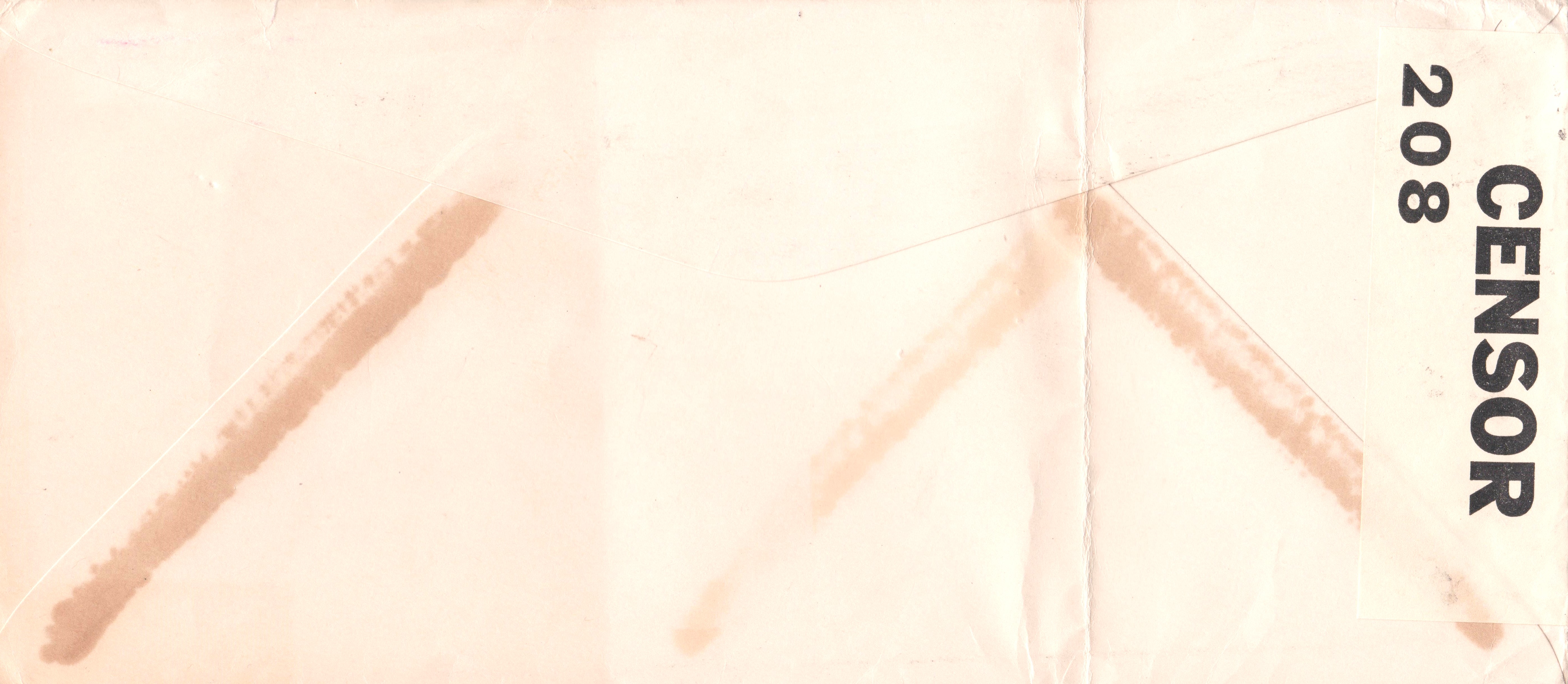 Der Brief durchlief die US-Zensur, wo er linksseitig geöffnet und nach erfolgter Prüfung mit einem Verschlußzettel "P.C. 66 OPENED BY CENSOR 208" wieder verschlossen wurde.