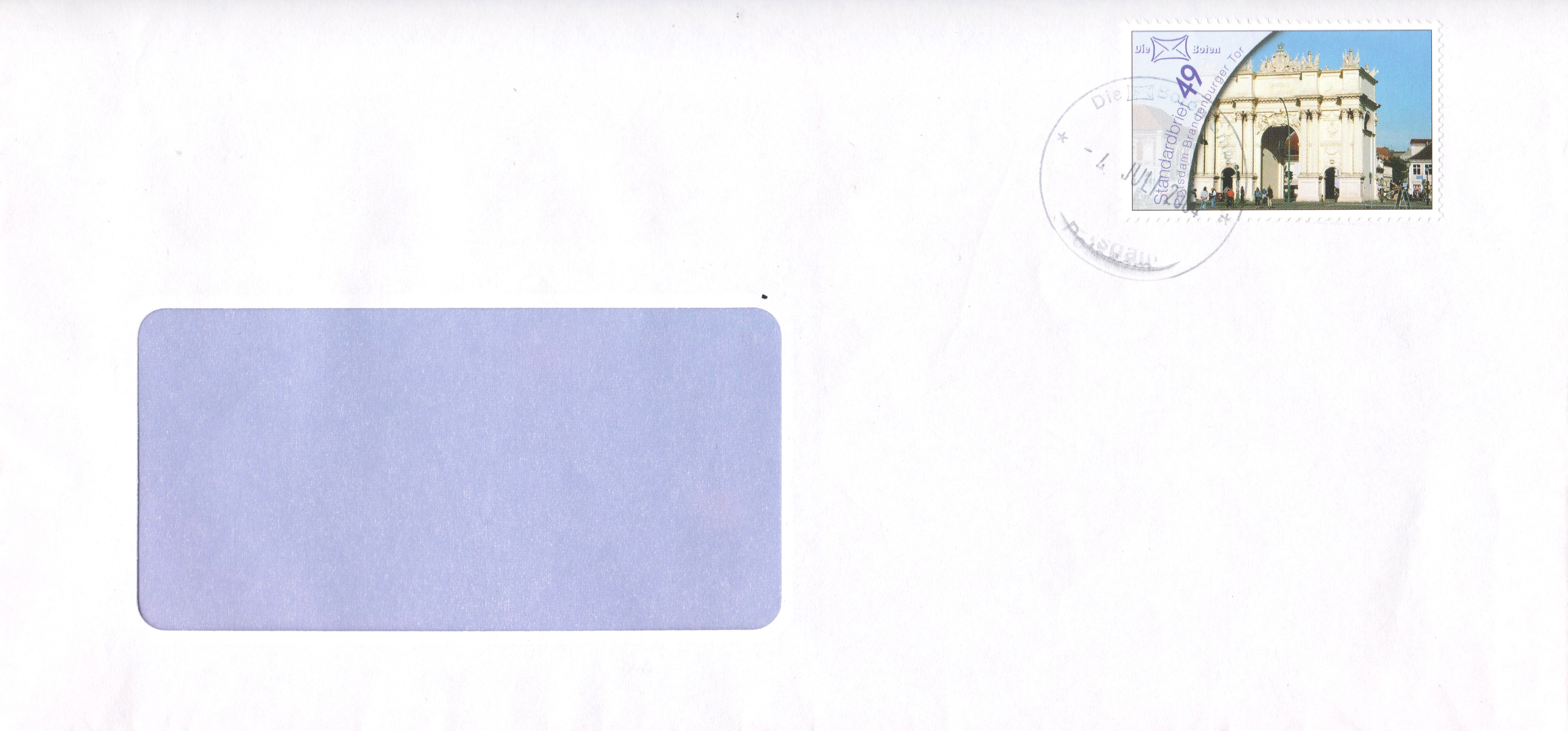 DBP 2 am 07.07.2004 als Einzelfrankatur auf Fensterbriefumschlag: