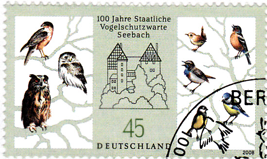 Die Marke "100 Jahre Staatliche Vogelschutzwarte Seebach" der Deutschen Post AG (MiNr 2661) zeigt unten in der Mitte auch einen Uhu.