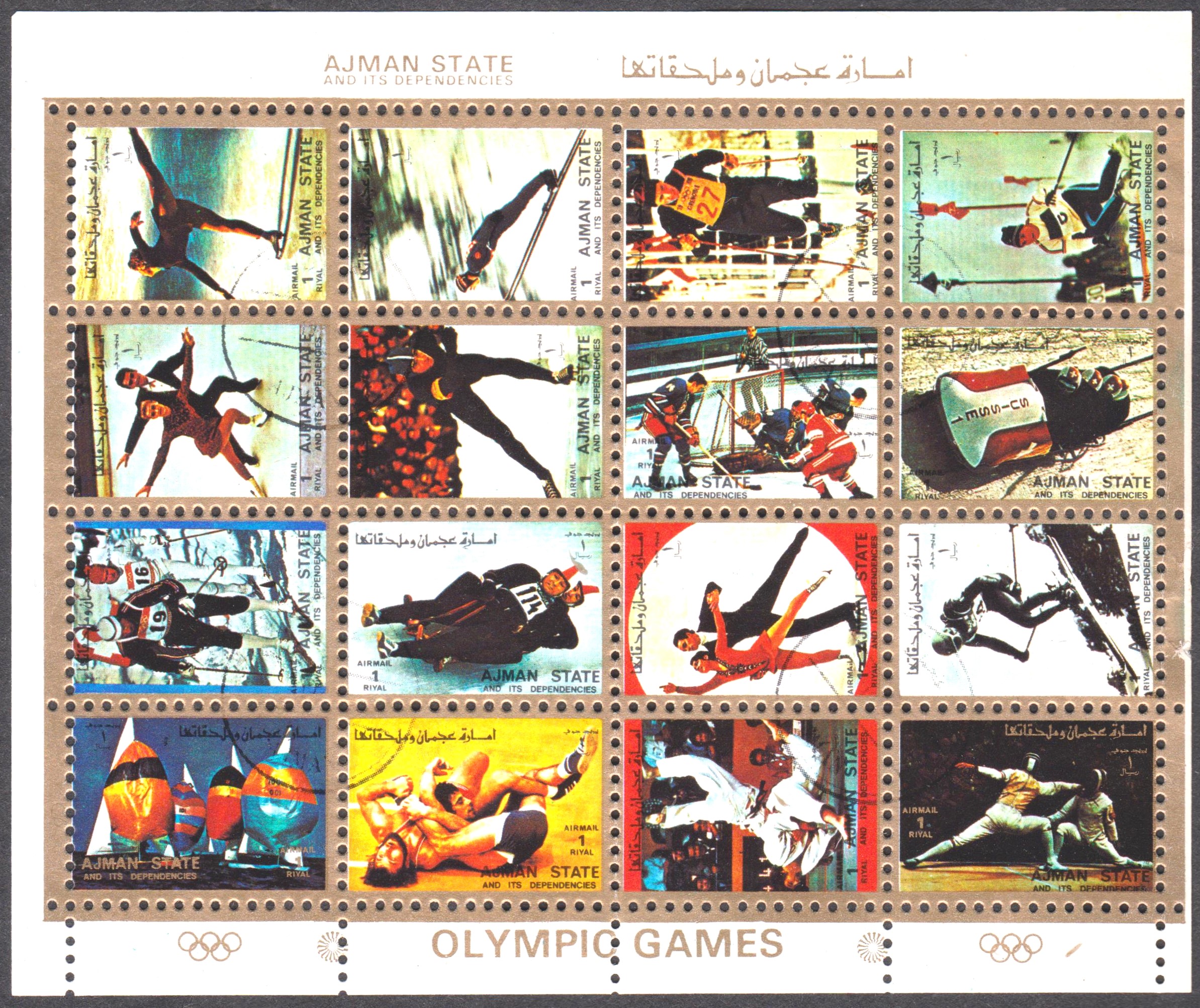 Ajman MiNr. 2733/2748 wurden zusammenhängend im Kleinbogen gedruckt: