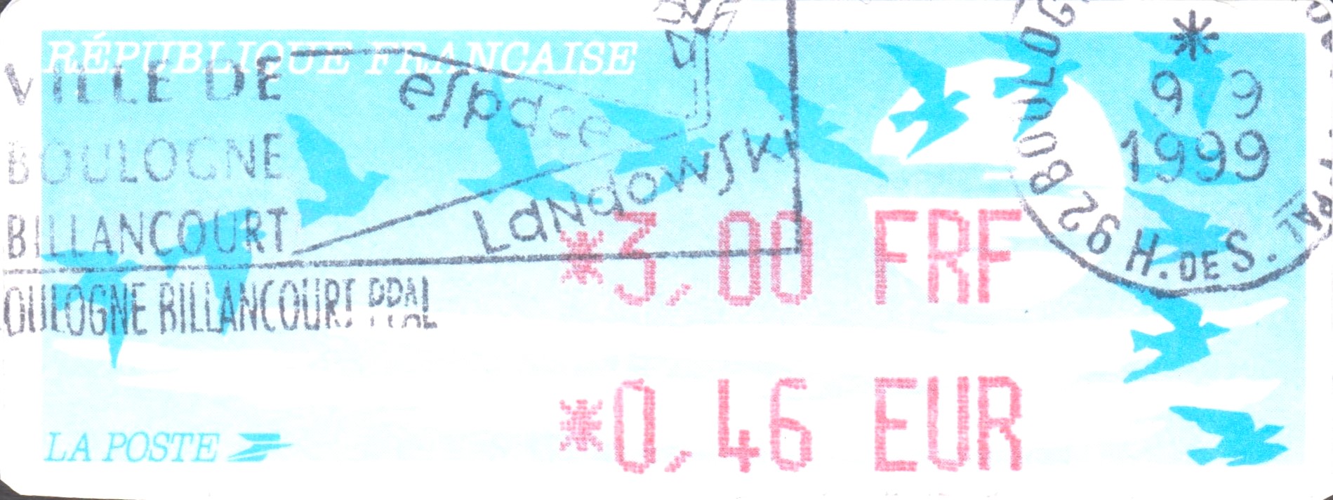 Frankreich 1990, Automatenmarke Type 12, Doppelnominale FRF/EUR: