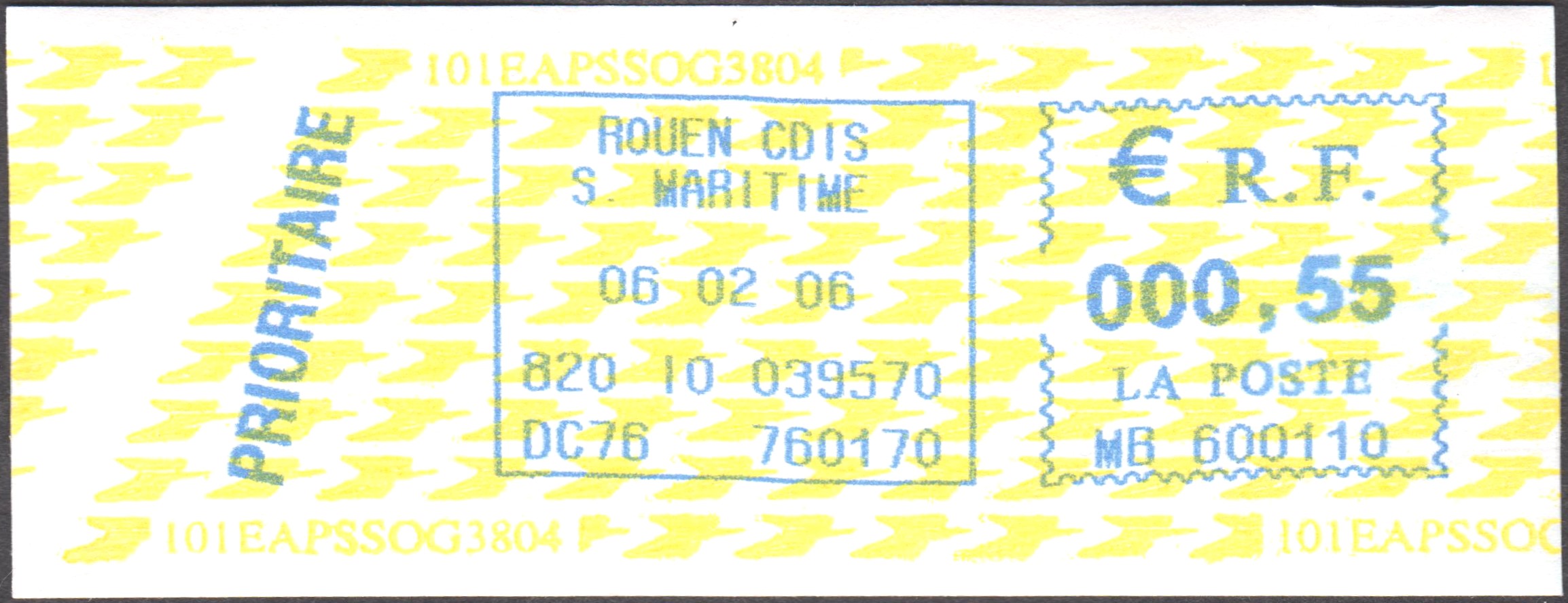 Frankieretikette aus ROUEN vom 06.02.2006: