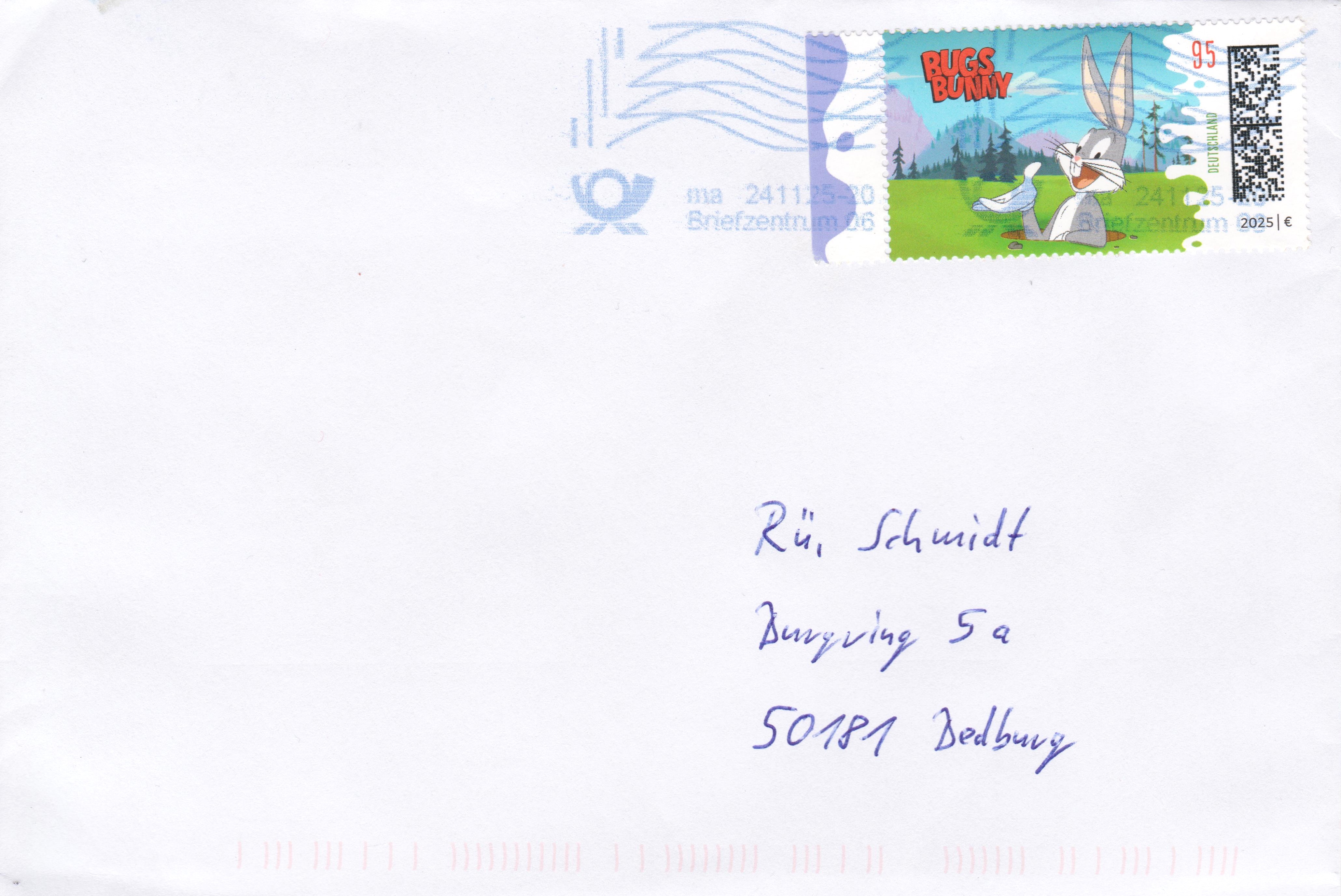 In der Serie "Helden der Kindheit" ist bei der Deutschen Post eine Marke (MiNr 3928) mit der Zeichentrickfigur der Warner-Brothers-Trickfilmstudios "Bugs Bunny in seinem Erdloch" erschienen. Hier zeige ich eine Marke vom Eckrand mit EAN-Codierung.