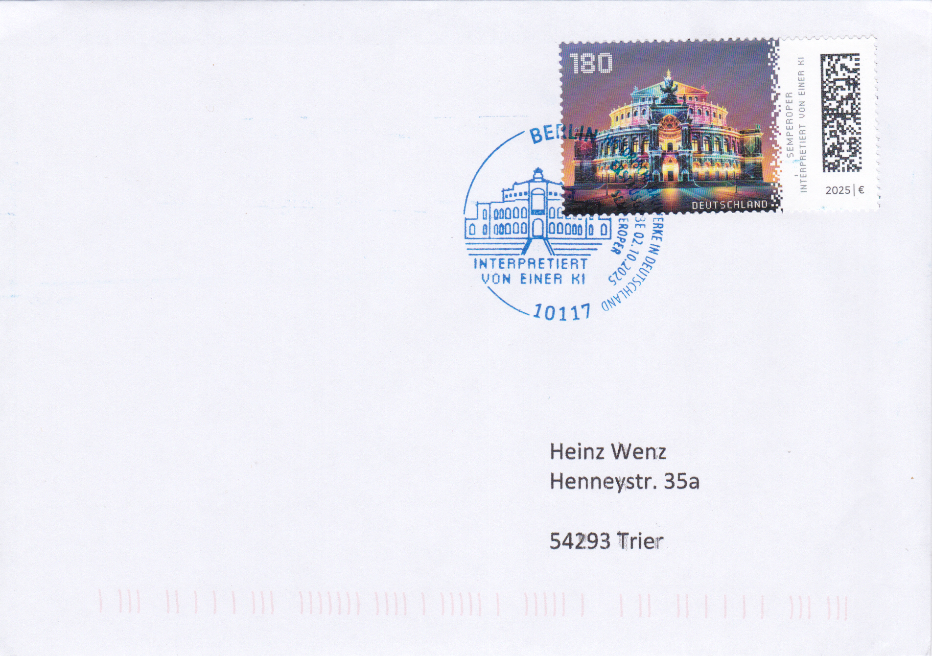 Brief vom Ersttag mit der Marke (MiNr 3930) mit der Semperoper in Dresden und dem Erstagsonderstempel Berlin.