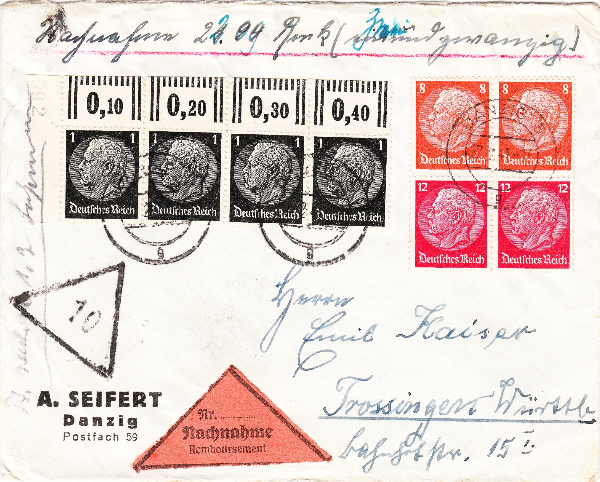 Sendungsart "Geschäftspapiere" am 07.04.1938 von Duisburg nach Plettenberg: