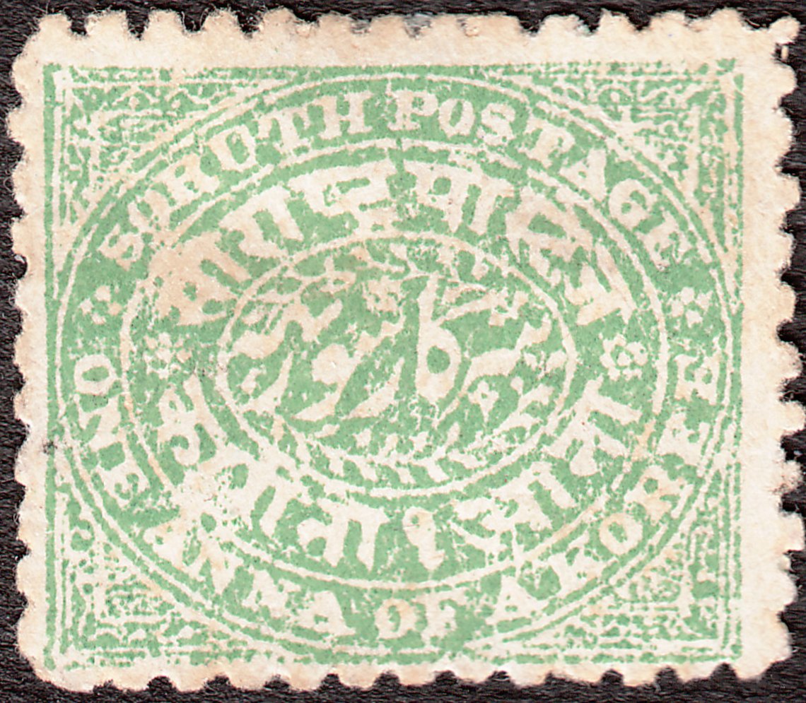 Foren-Übersicht Fragen und Diskussion Übersee Asien Indien Vertragsstaaten und Feudalstaaten Soruth = Sauraschtra MiNr. 8 - 1 Anna grün, gezähnt
