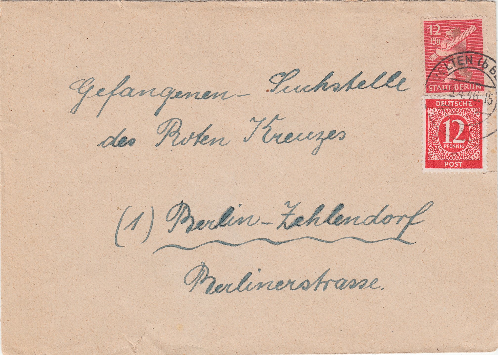 Hier eine MeF von zwei Exemplaren der MiNr. 5 portogerecht auf einem Brief im Fernverkehr (24 Pf), gelaufen am 18.04.1946 von Berlin nach Hannover: