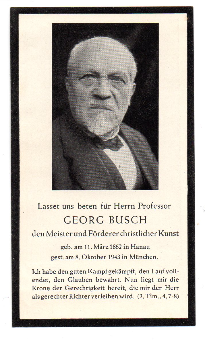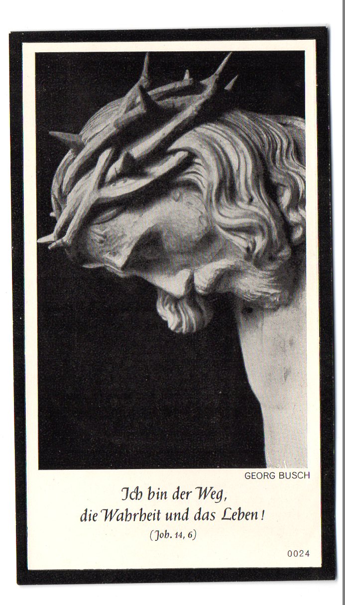 Darin enthalten waren insgesamt 3 Dokumente, 2 davon Traueranzeigen/Nachrufe und eine Bekanntmachung einer Hochzeit. Den Namen in den Traueranzeigen habe ich recherchiert und bin auf den Bildhauer Prof. Georg Busch gestoßen, der einer bekannten Bildhauerfamilie angehört und für seine christlichen Kunstwerke bekannt ist. Nähere Informationen findet ihr auf dieser sehr informativen Homepage: http://www.busch-steinheim.de/46801.html