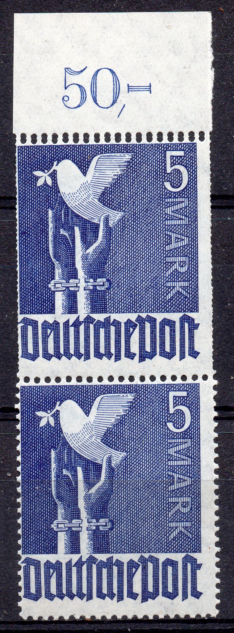 Bei der oberen Reihe des Markenbogens wurde dieser Kammschlag doppelt ausgeführt.