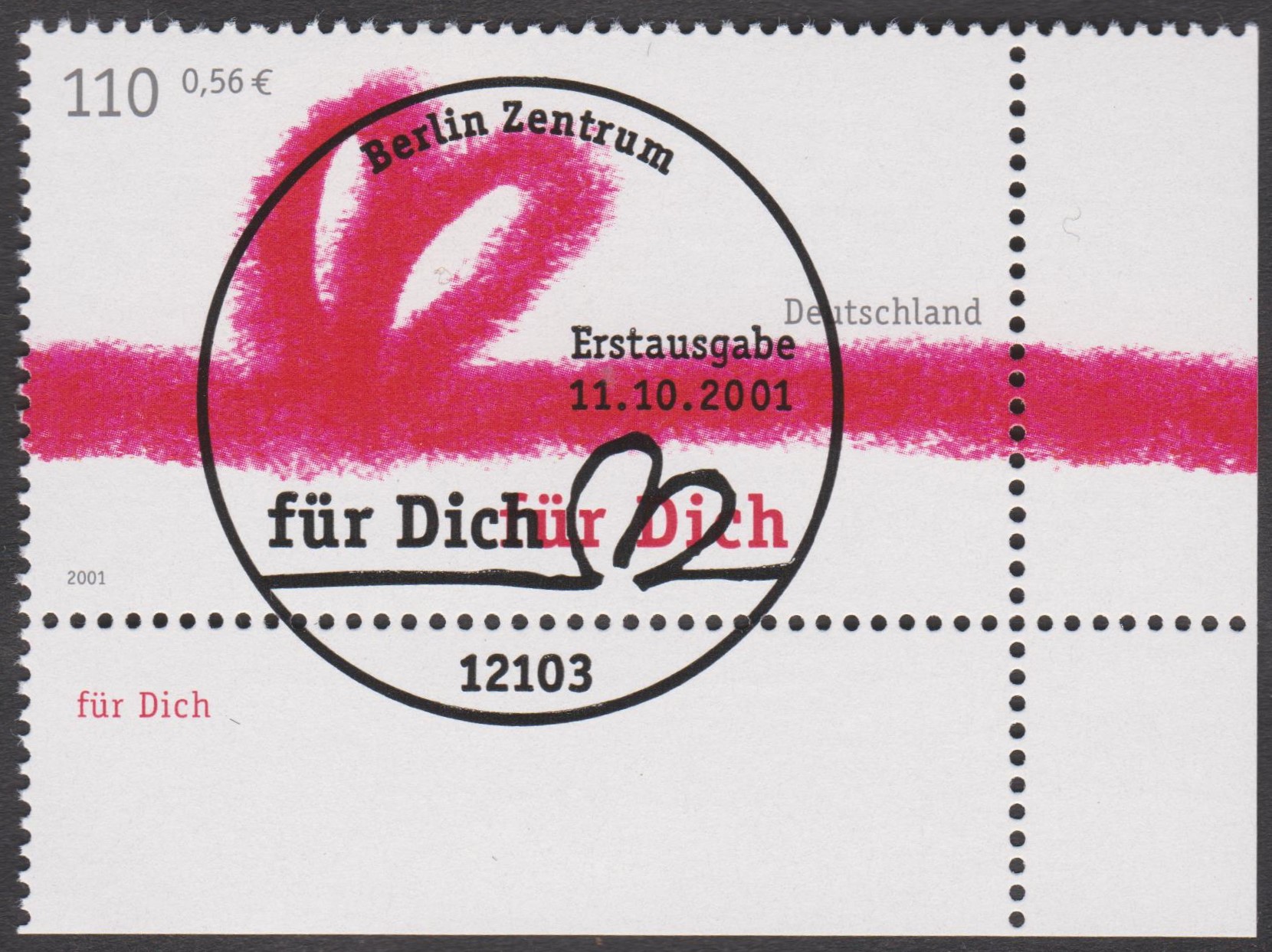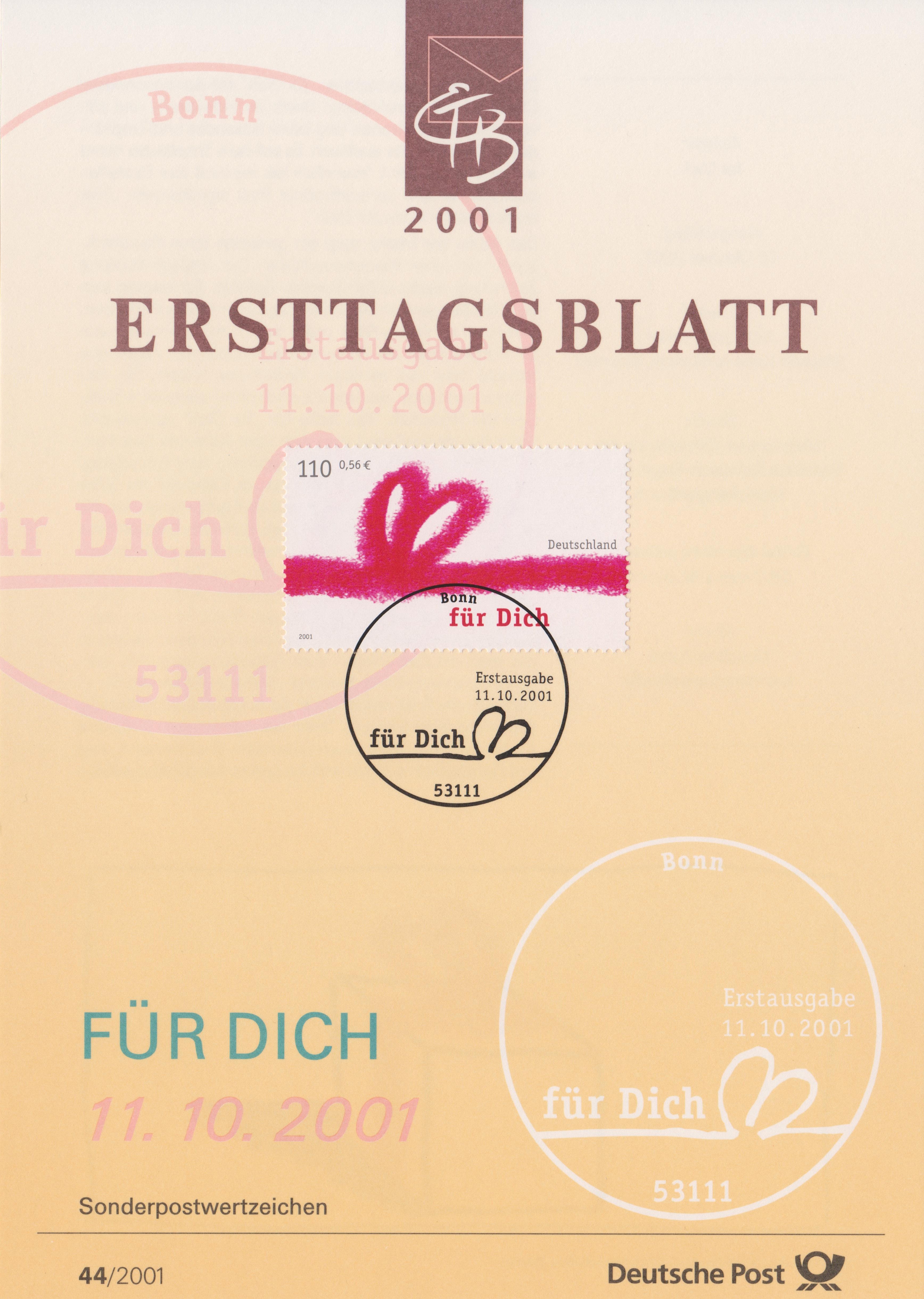 Am 11. 10. 2001 erschien die Sondermarke "Grußmarke" im Bereich der Deutschen Post im üblichen 10er-Bogen.