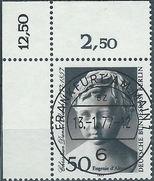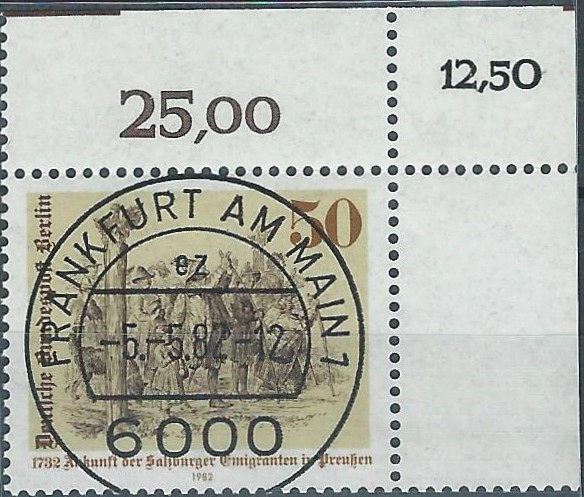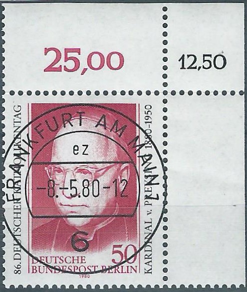 ...sowie der Wert zu 10 Pf mit senkrechtem Zudruck. Bei dieser Serie gibt es beide Varianten, ich habe aber noch nicht herausbekommen, ob das für alle Werte gilt oder nur innerhalb einer Wertstufe eine Form existiert.