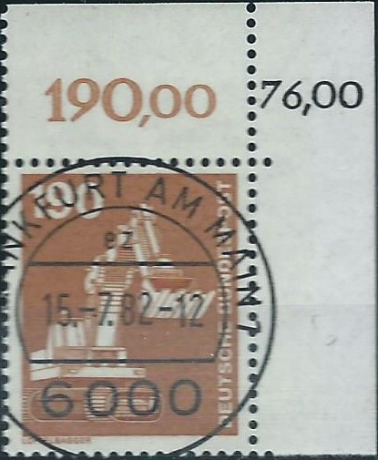 Daher eine kurze Auswahl zur Ansicht: Beginnen möchte ich mit der Ausgabe Industrie und Technik von Bund. Hier kommt einmal der Wert zu 190 Pf: