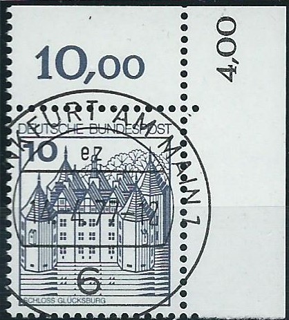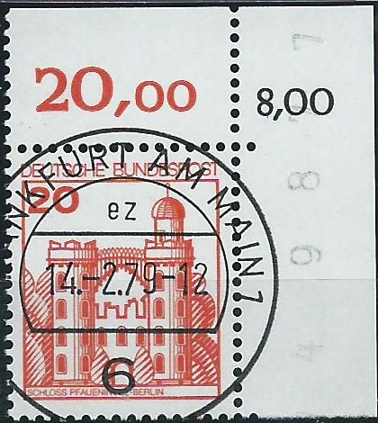 Dann aus der Serie Burgen und Schlösser die 20 Pf mit waagerechtem Zudruck: