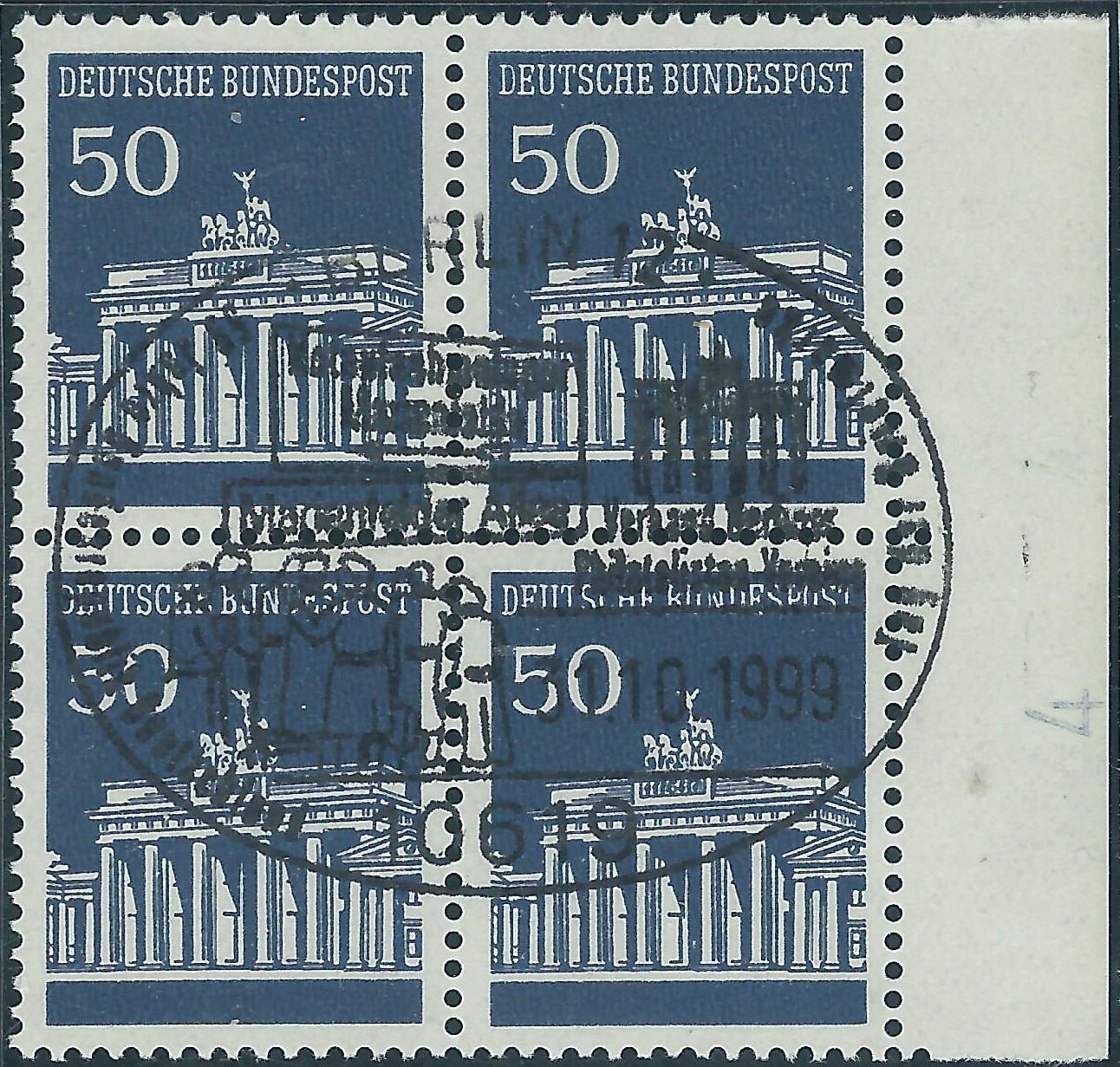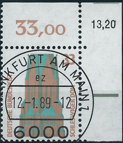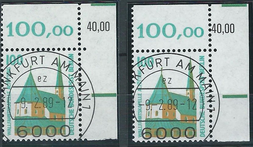 Dann noch eine Besonderheit der Sehenswürdigkeiten: Bei der 100 Pf-Marke liegen mir 2 Varianten vor: Einmal „normal“ und einmal etwas nach links versetzt.