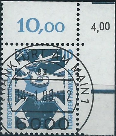 Aus der Serie Sehenswürdigkeiten Bund der Wert zu 10 Pf mit korrigiertem Bogenwertzähler 4,00:
