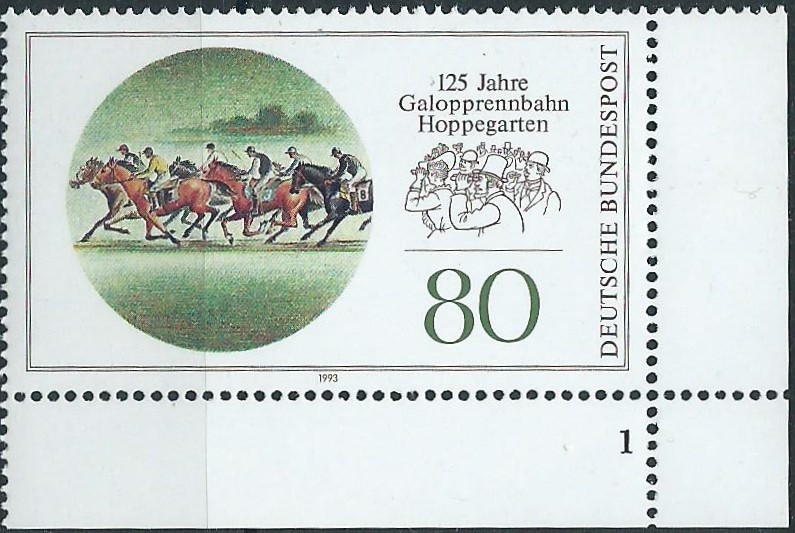 Ein Wert zu 80 Pf, 125 Jahre Galopprannbahn Hoppegarten (Mi.Nr. 1677) mit Formnummer 1: