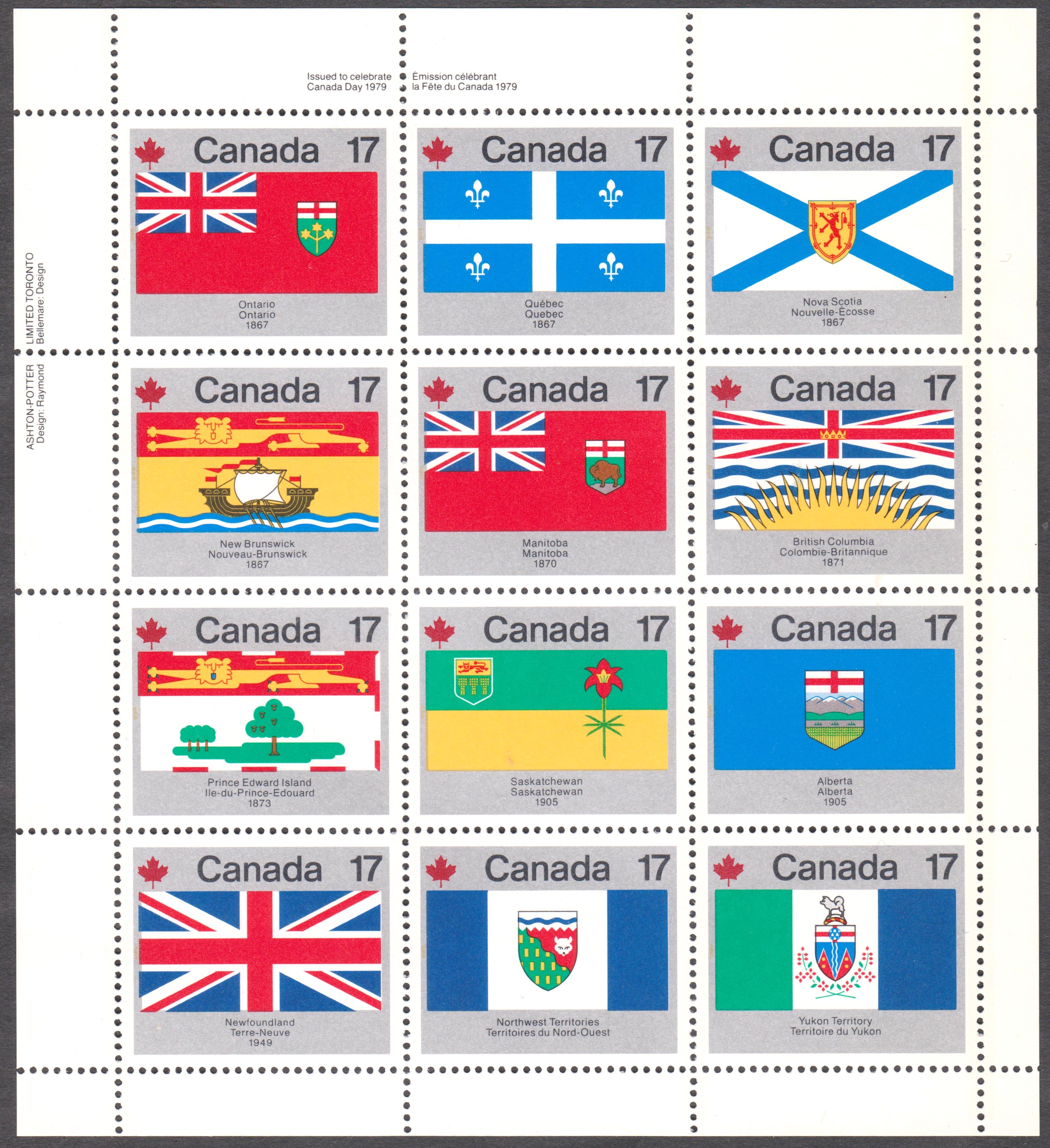 Dieser Zusammendruck-Bogen Kanada MiNr. 731-742 zeigt gleich 12 Flaggen verschiedener kanadischer Provinzen: