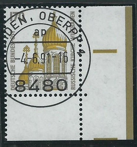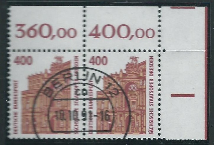 mich hatte kürzlich ein Sammlerfreund auf eine Besonderheit bei der Dauerserie Sehenswürdigkeiten angesprochen. Er hat Belege erhalten, auf denen Marken vom rechten Bogenrand kleben und neben den waagerechten Standstrichen ganz rechts noch eine senkrechte Farblinie zu sehen ist. Normalerweise ist der senkrechte Farbbalken nur auf dem linken Bogenrand zu sehen. Diese Erscheinung tritt auf, wenn die Bogenränder nicht wie geplant beschnitten wurden und Überbreite haben. Aus meiner Sammlung kann ich hier einige Stücke belegen, theoretisch kann diese Erscheinung auf allen Wertstufen von Bund und Berlin auftreten.