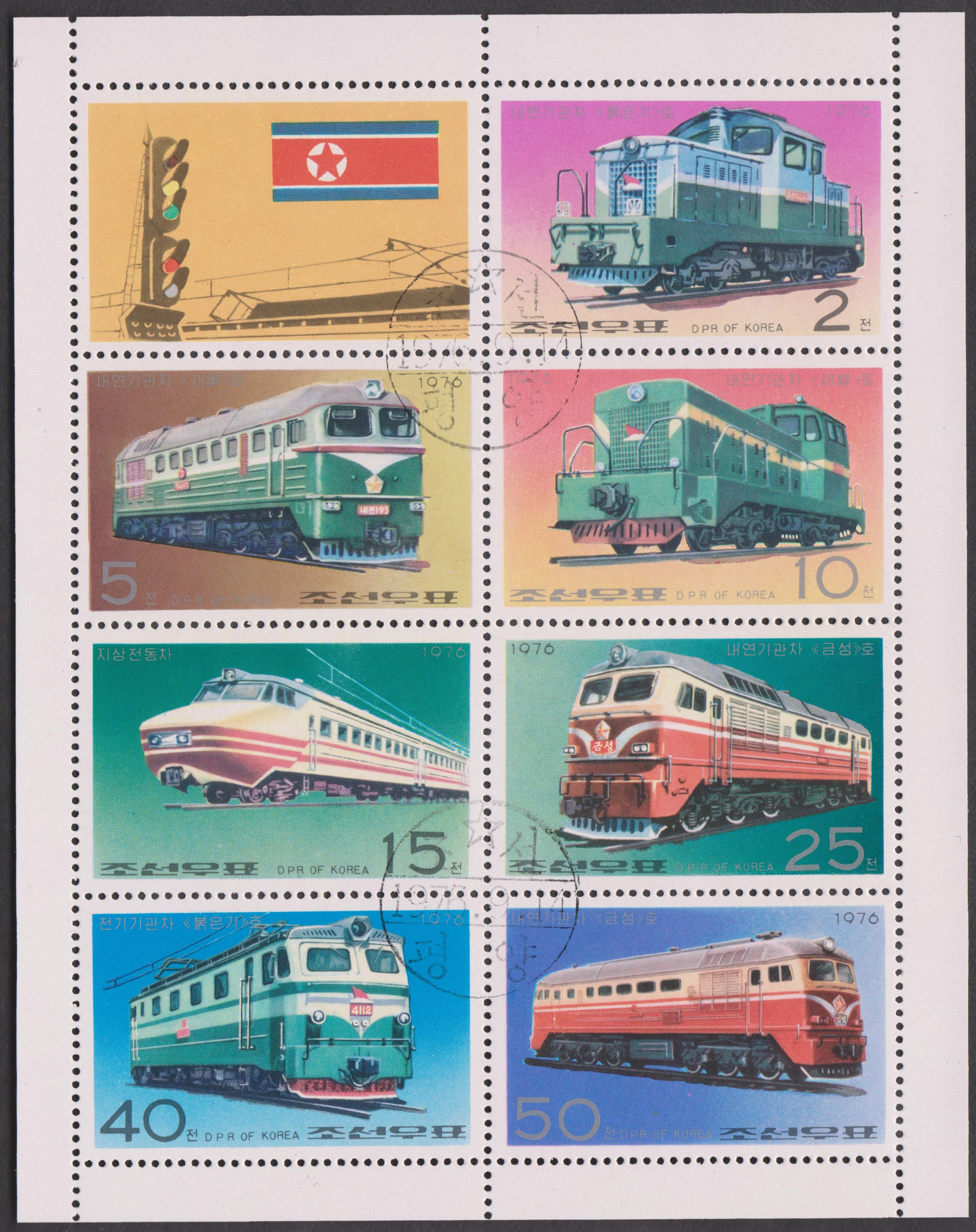 Dieser Kleinbogen Nordkorea MiNr. 1555 - 1561 zeigt gleich 7 verschiedene Lokomotiven: