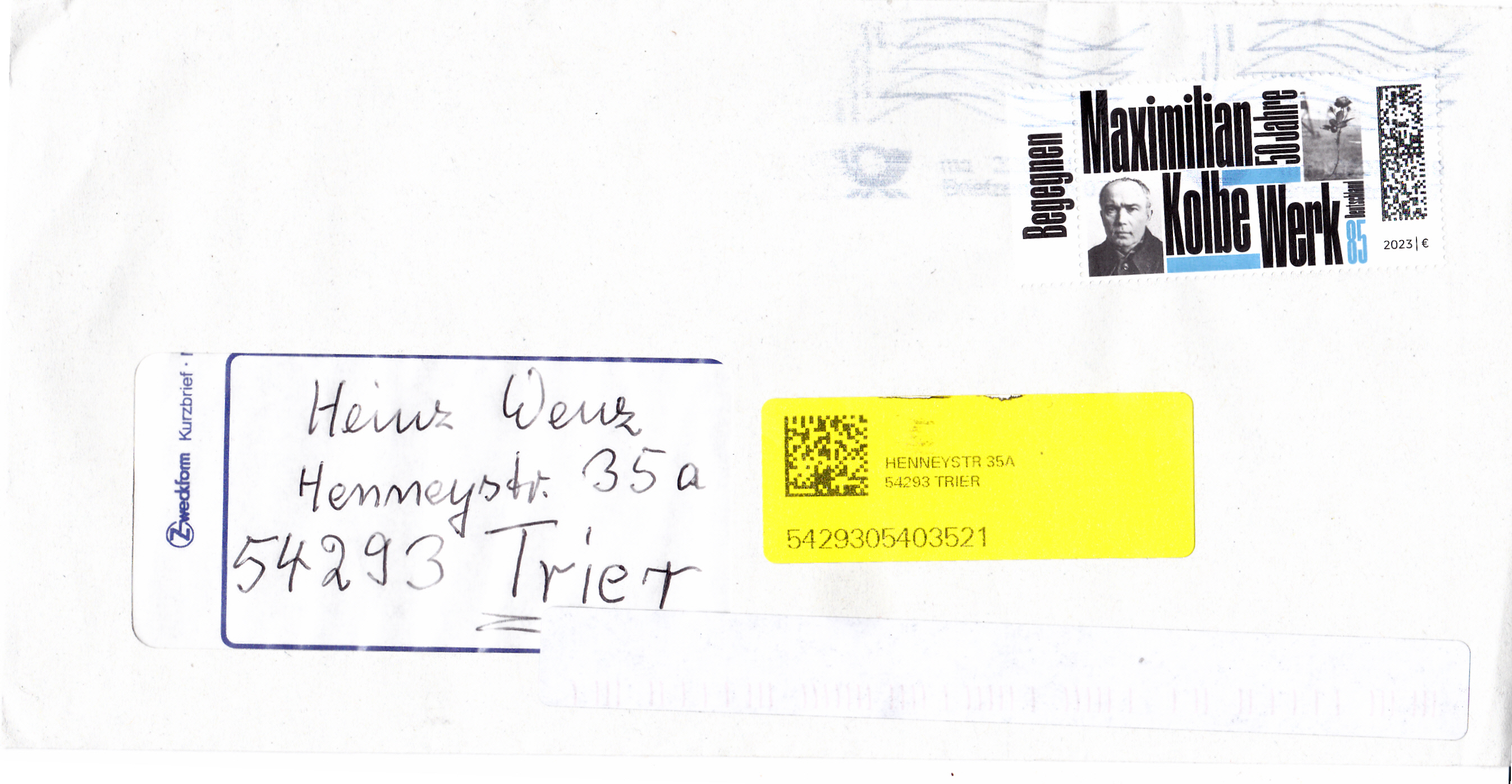 danke für den Hinweis. Für mich war und ist die Anschrift gut lesbar, vielleicht haben die beiden Striche unter "Trier" gestört?