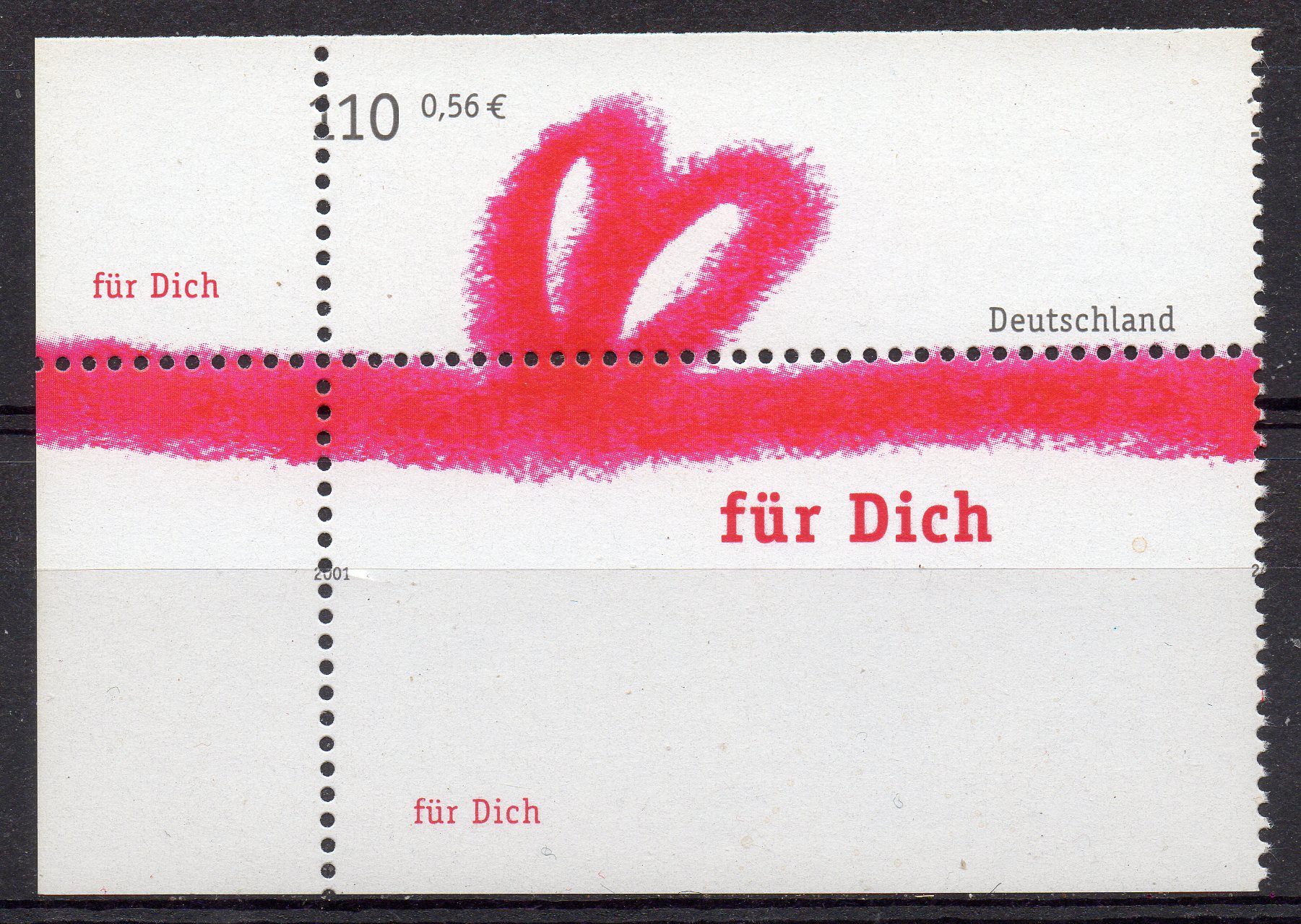 Bei der oberen Reihe des Markenbogens wurde dieser Kammschlag doppelt ausgeführt.