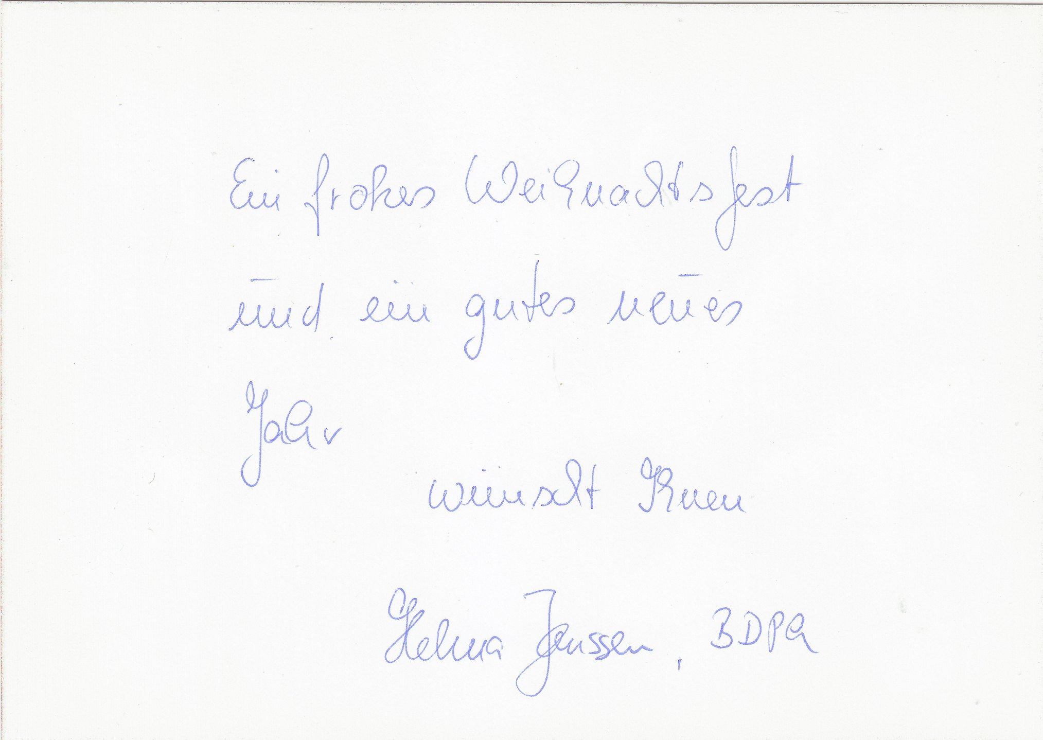 Von Helma Janssen vom BDPh erhielten wir diesen netten Weihnachtsgruß:
