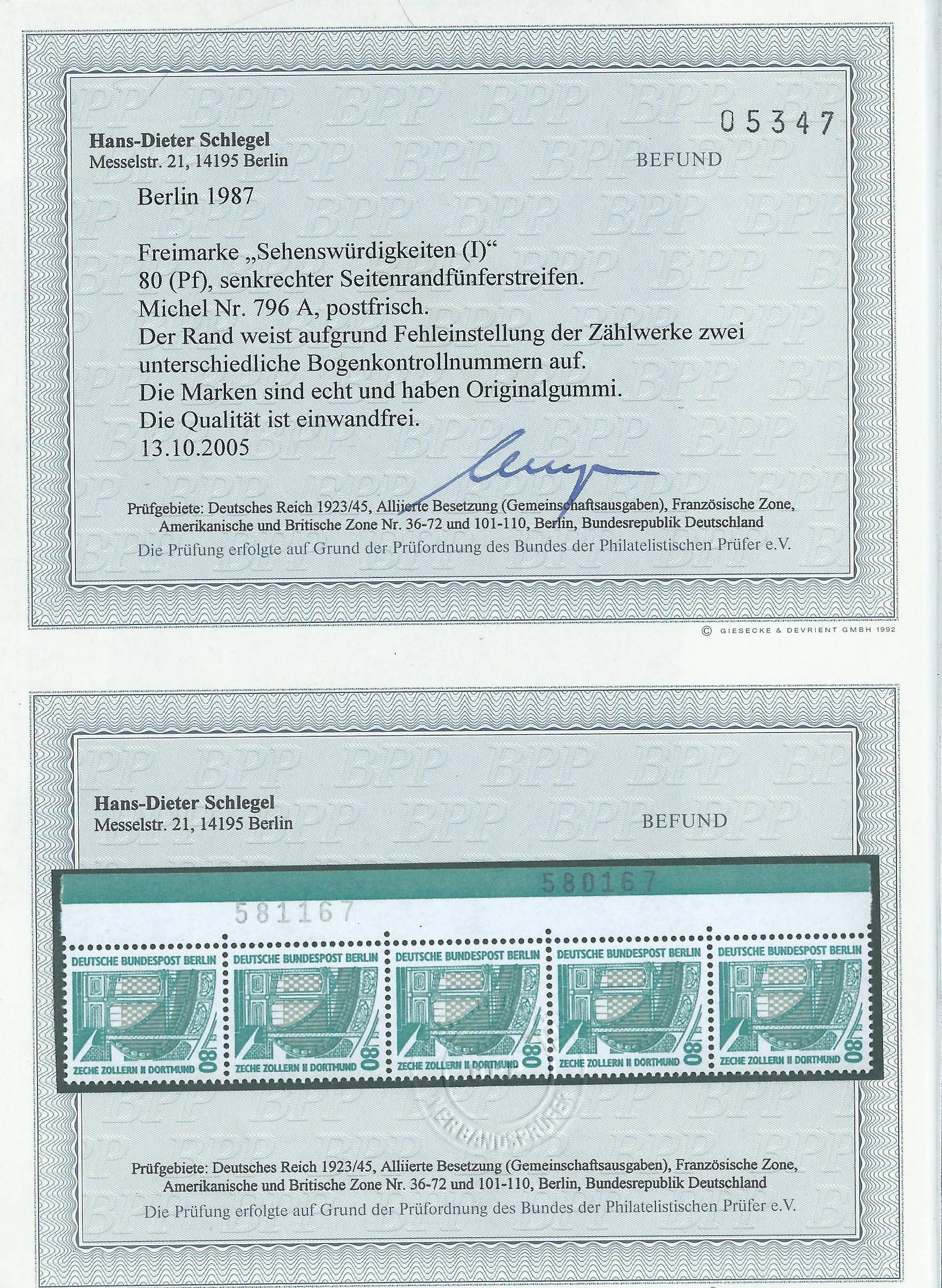 Wir haben hier zwei verschiedene Bogenzählnummern!!! Einmal 581167 und einmal 580167! Da war das Zählwerk defekt oder falsch eingestellt. Es gibt hierzu sogar noch einen Kurzbefund vom Prüfer Hans-Dieter Schlegel: