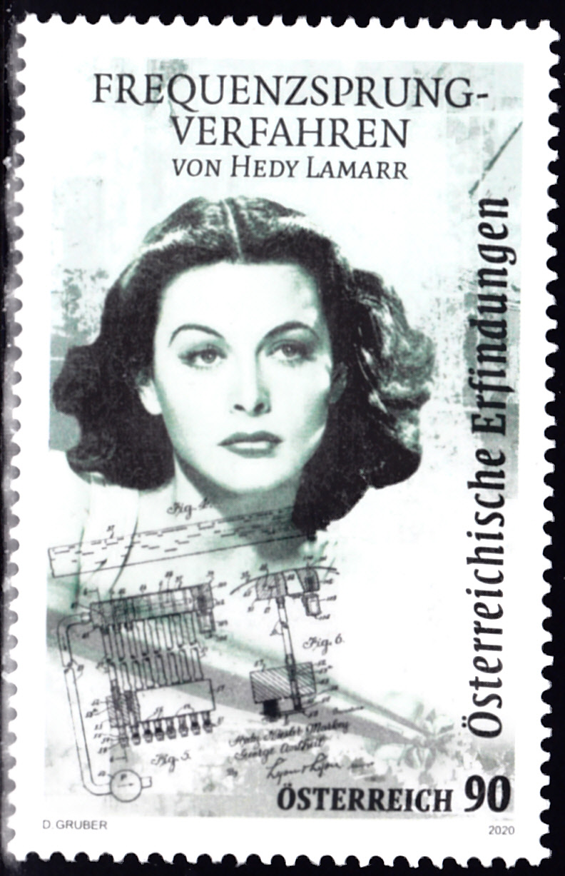 In Österreich erschien diese Marke (MiNr 3501) in der Serie "Österreichische Erfindungen: Frequenzsprungverfahren" mit einem Porträt von Hedy Lamarr (1914–2000, österreichisch-amerikanische Filmschauspielerin und Erfinderin).